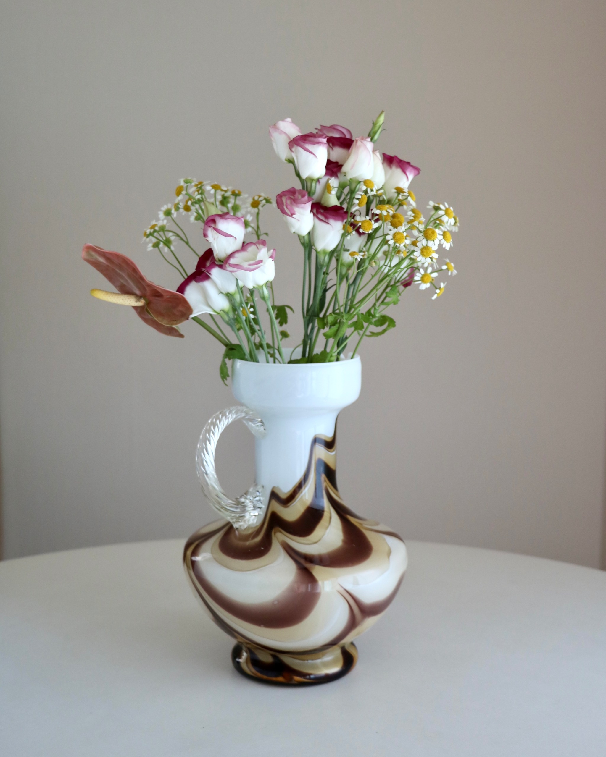 ふわっと広がるお花であれば、ピッチャーやグラス・ゴブレットと組み合わせると可愛く飾れます。