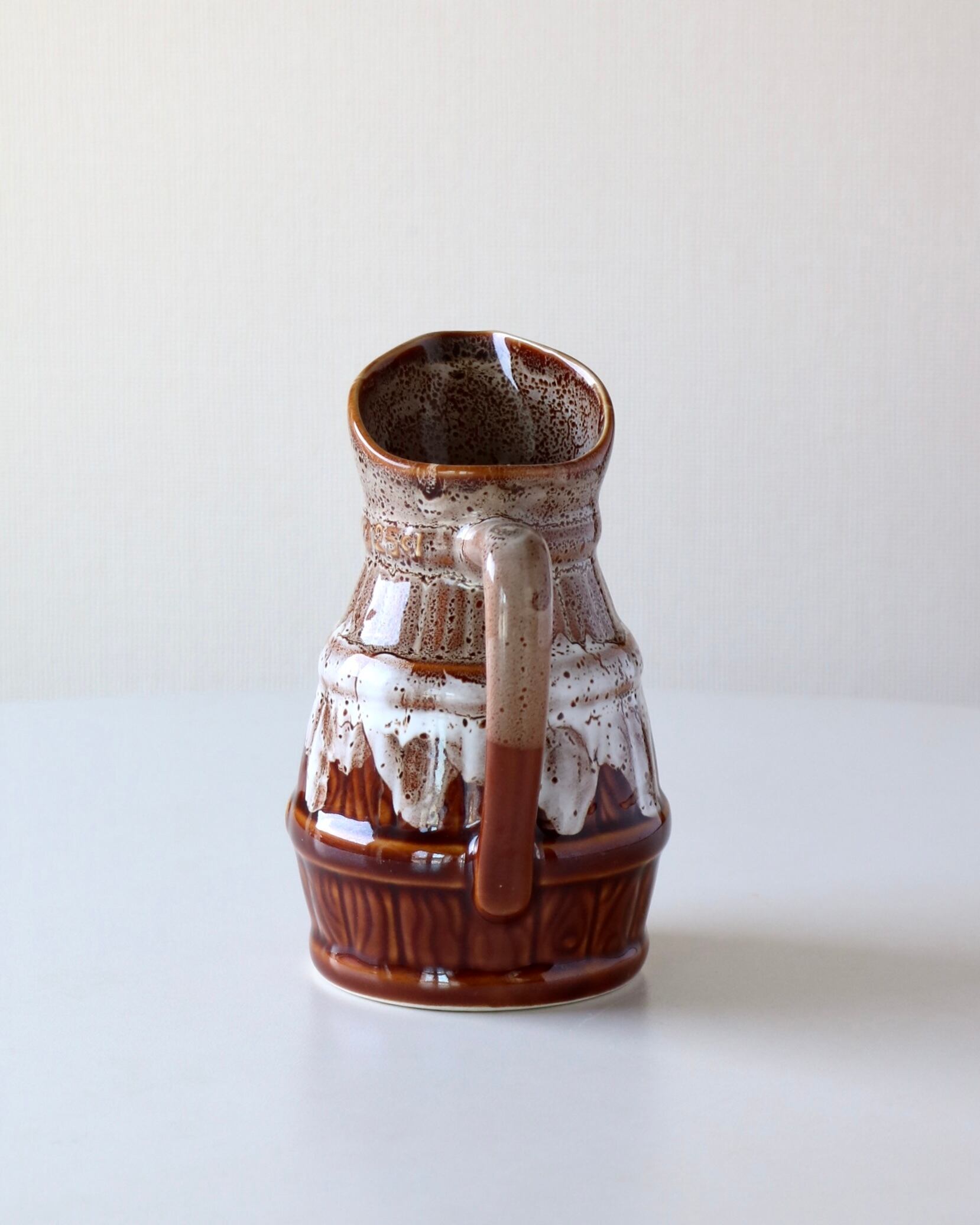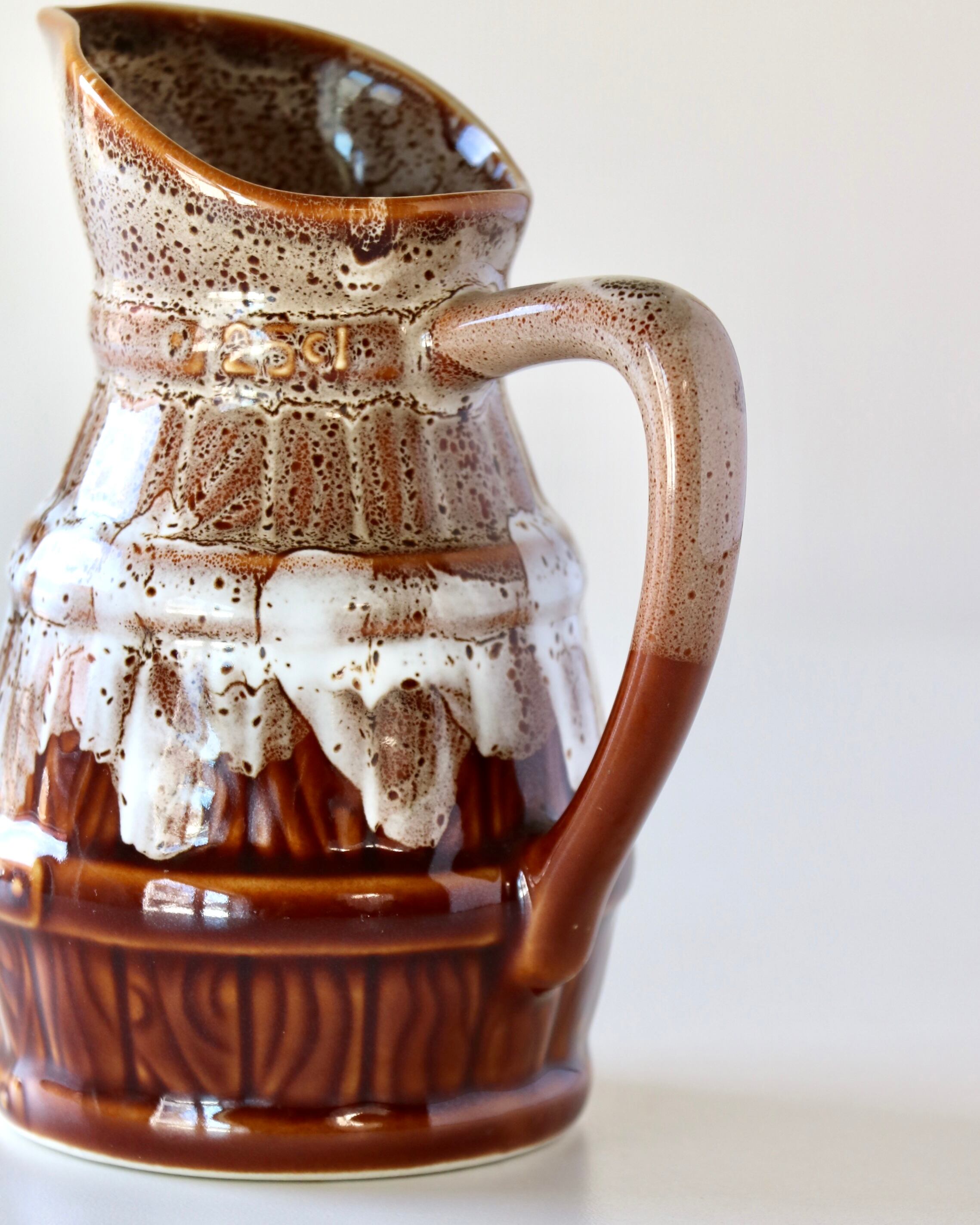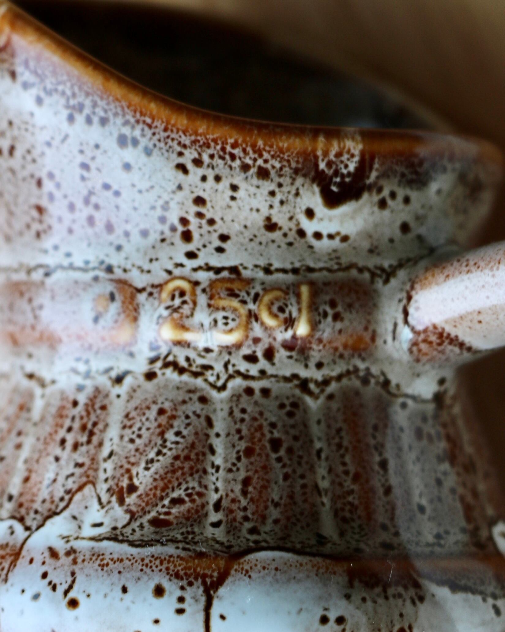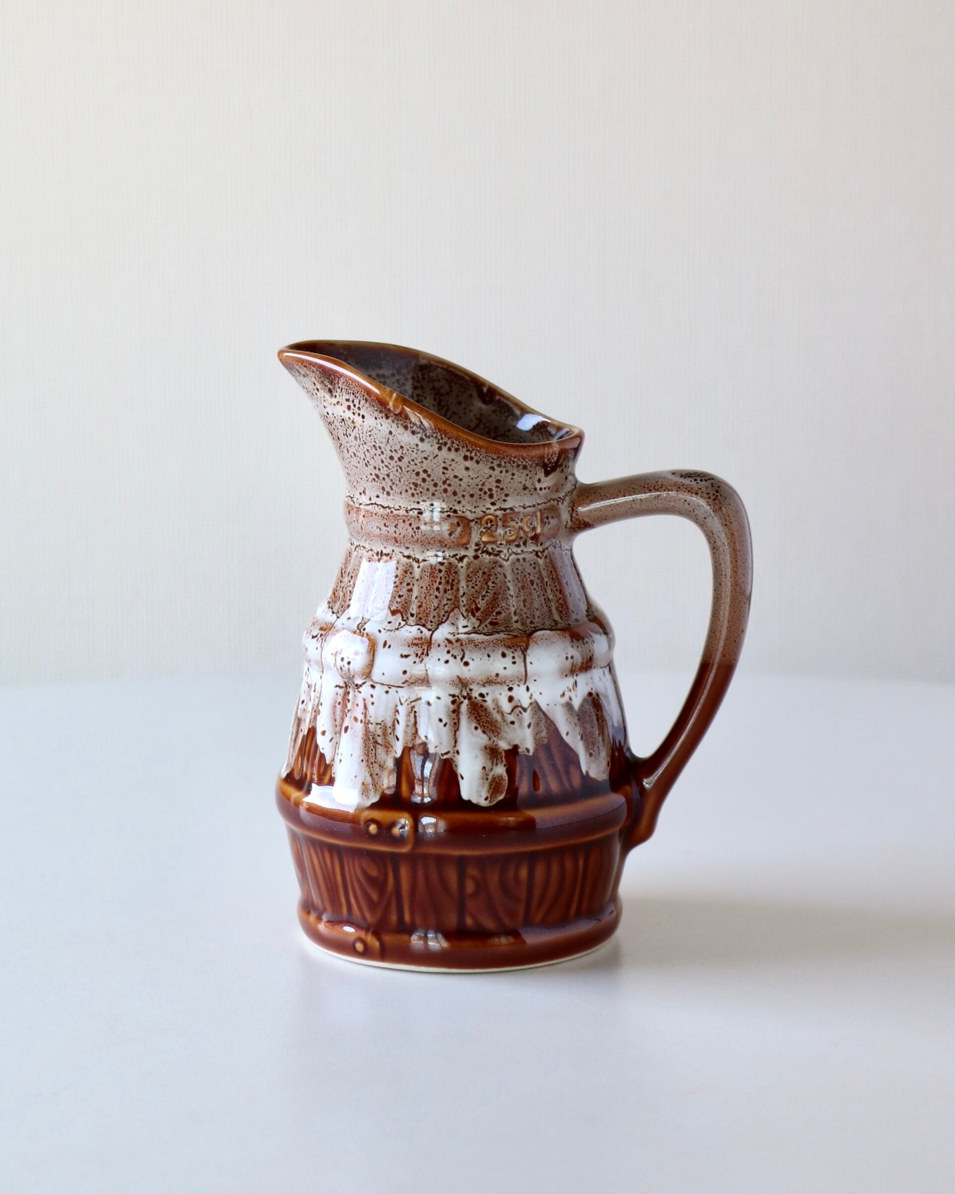釉薬がとろんと垂れた、樽のような模様がとてもユニーク。(さりげない250mlの印にもニヤリ)
