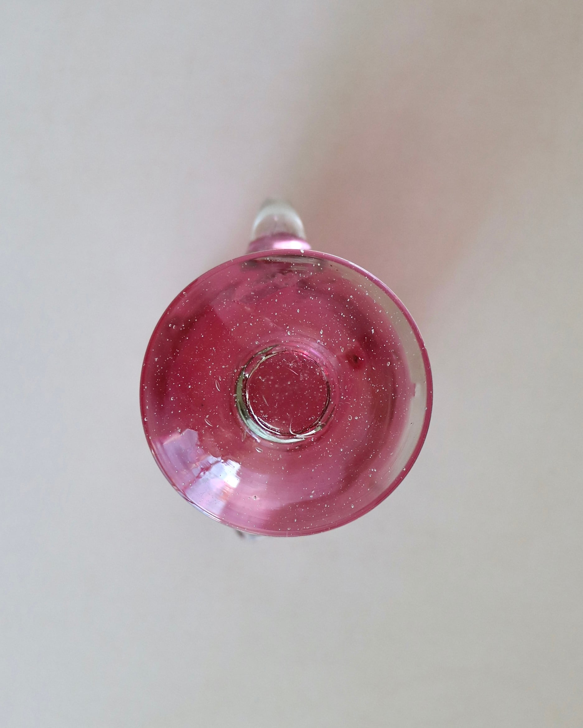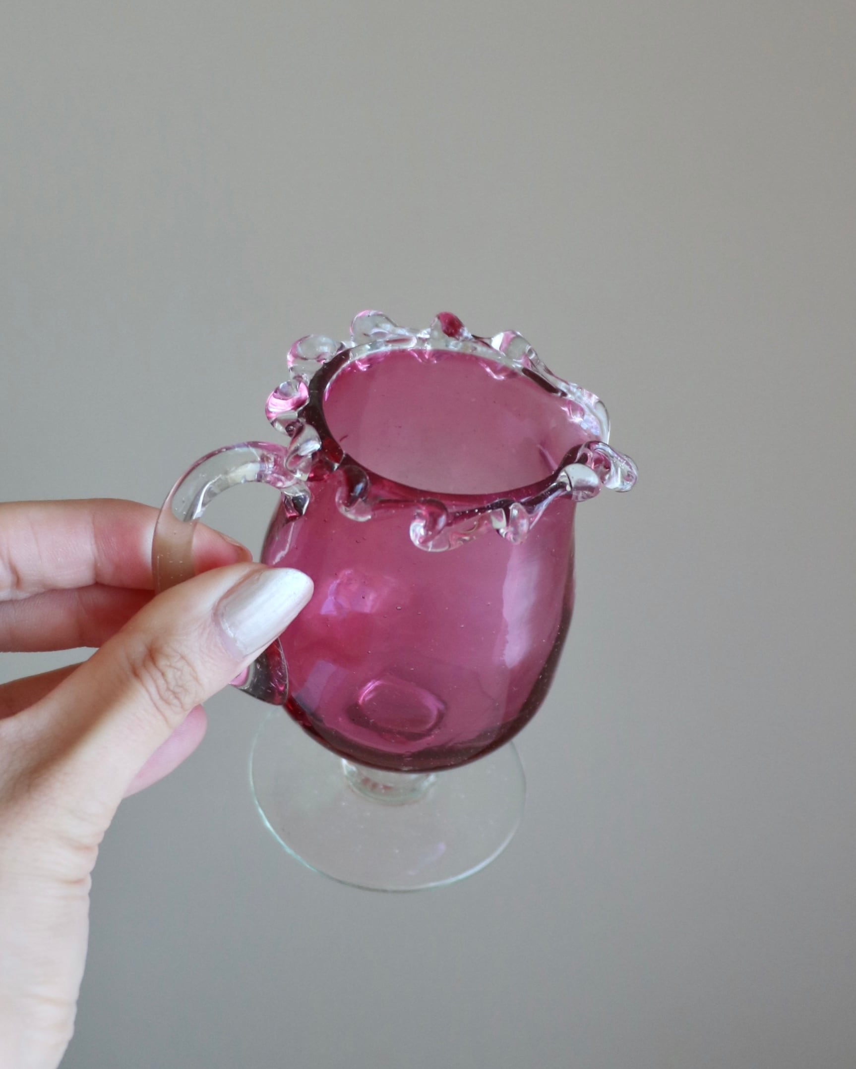 深みのあるクランベリー色もさることながら、口元に施されたクリアガラスの装飾が本当にチャーミングです。