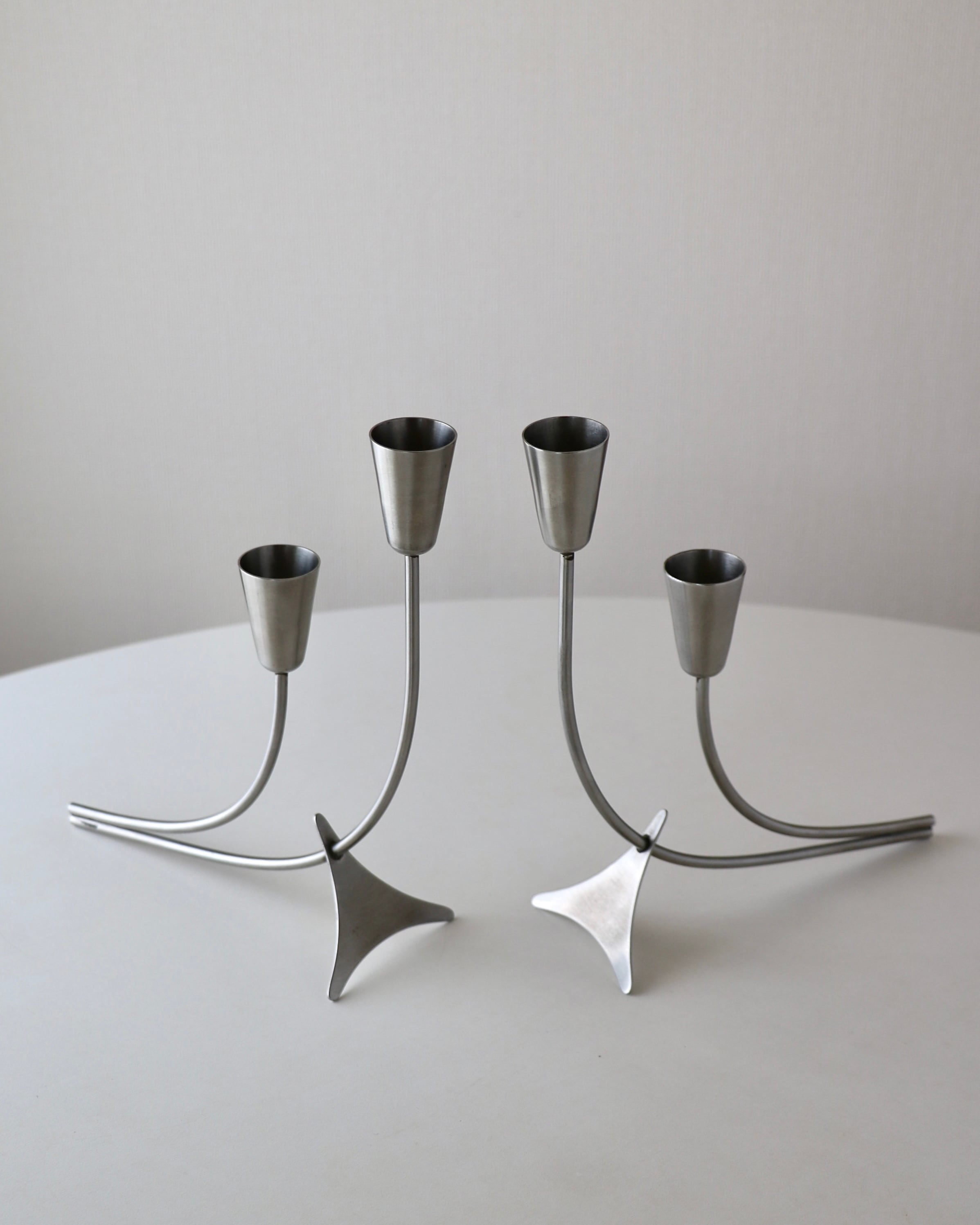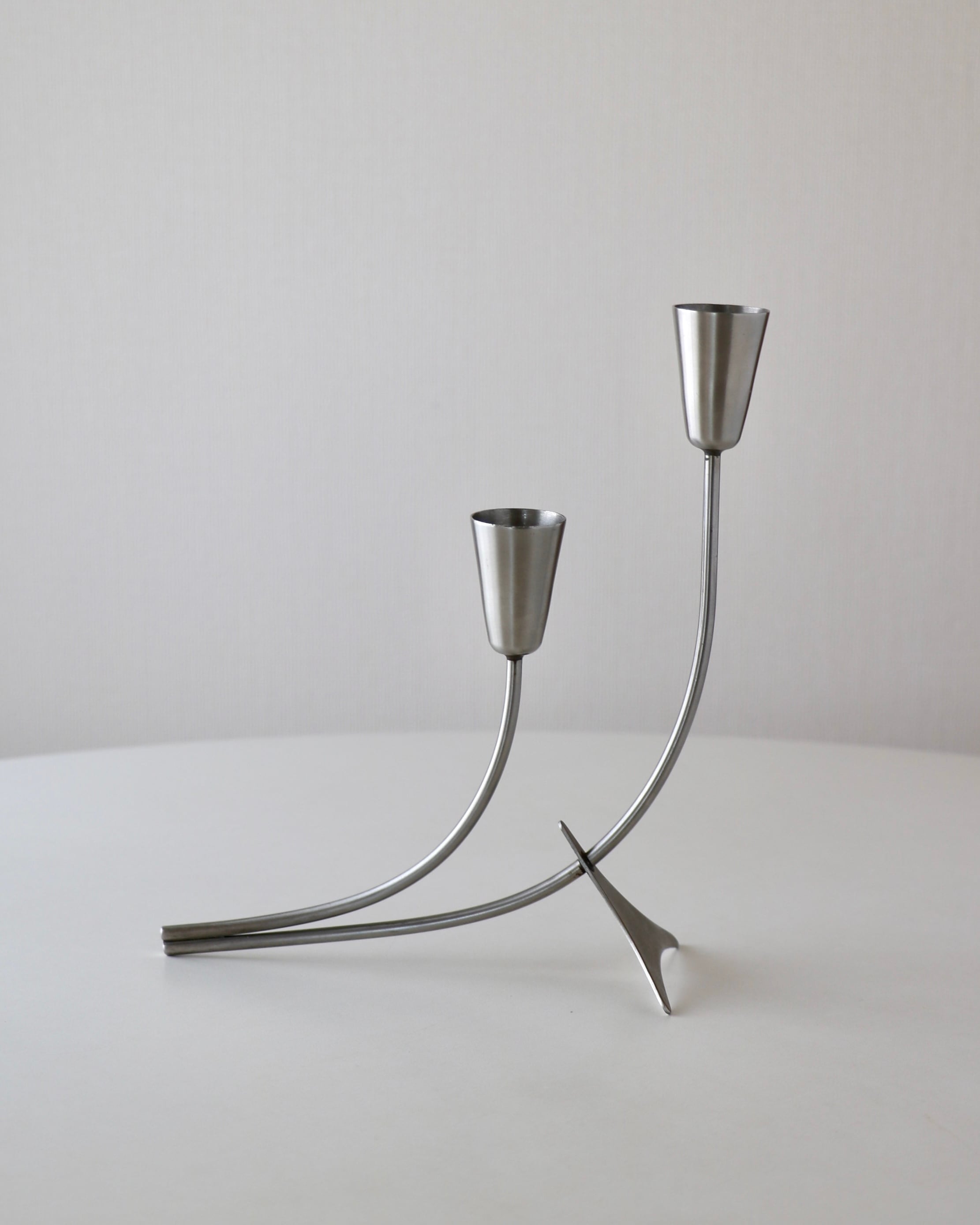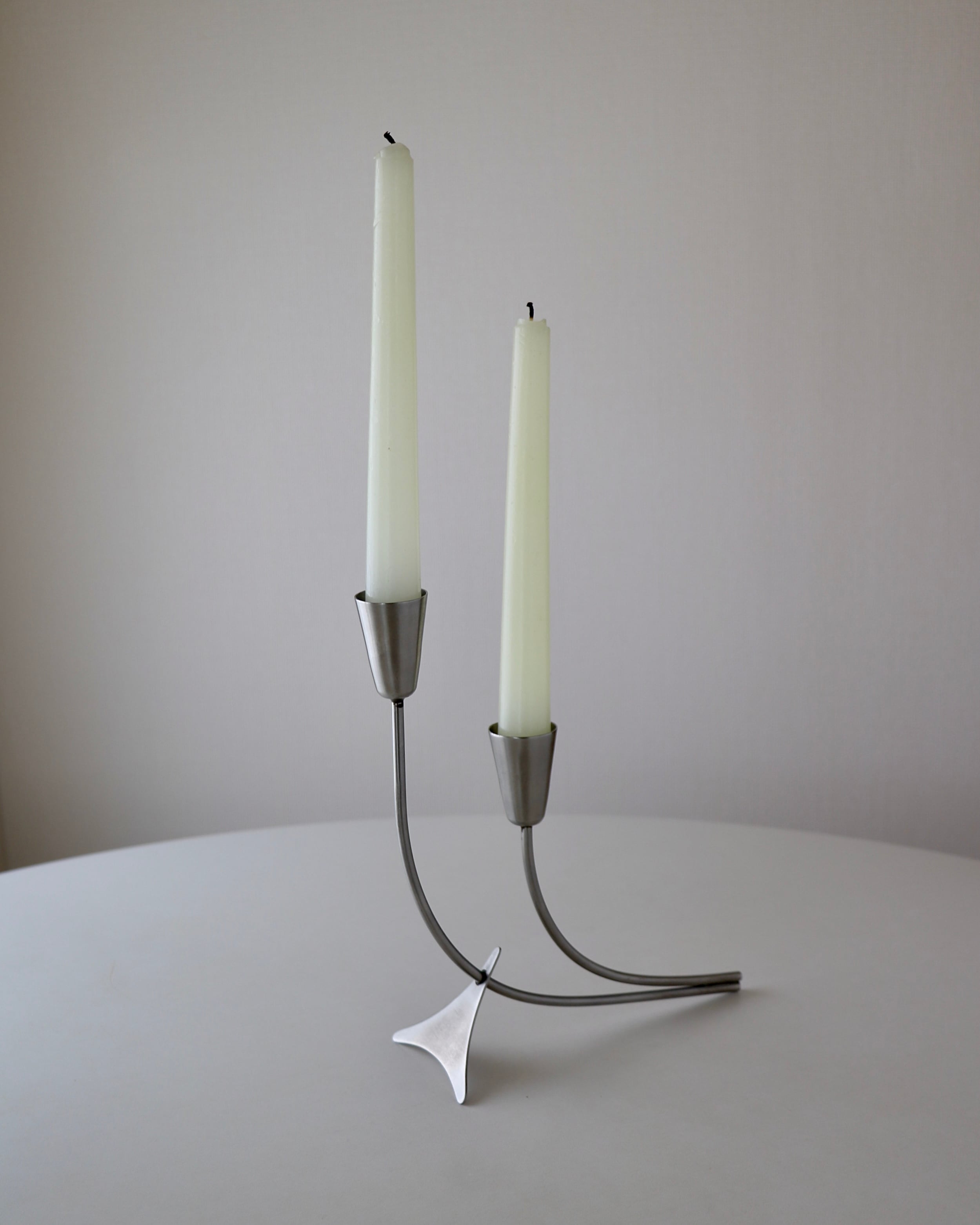 ステンレススチール製のキャンドルホルダー。