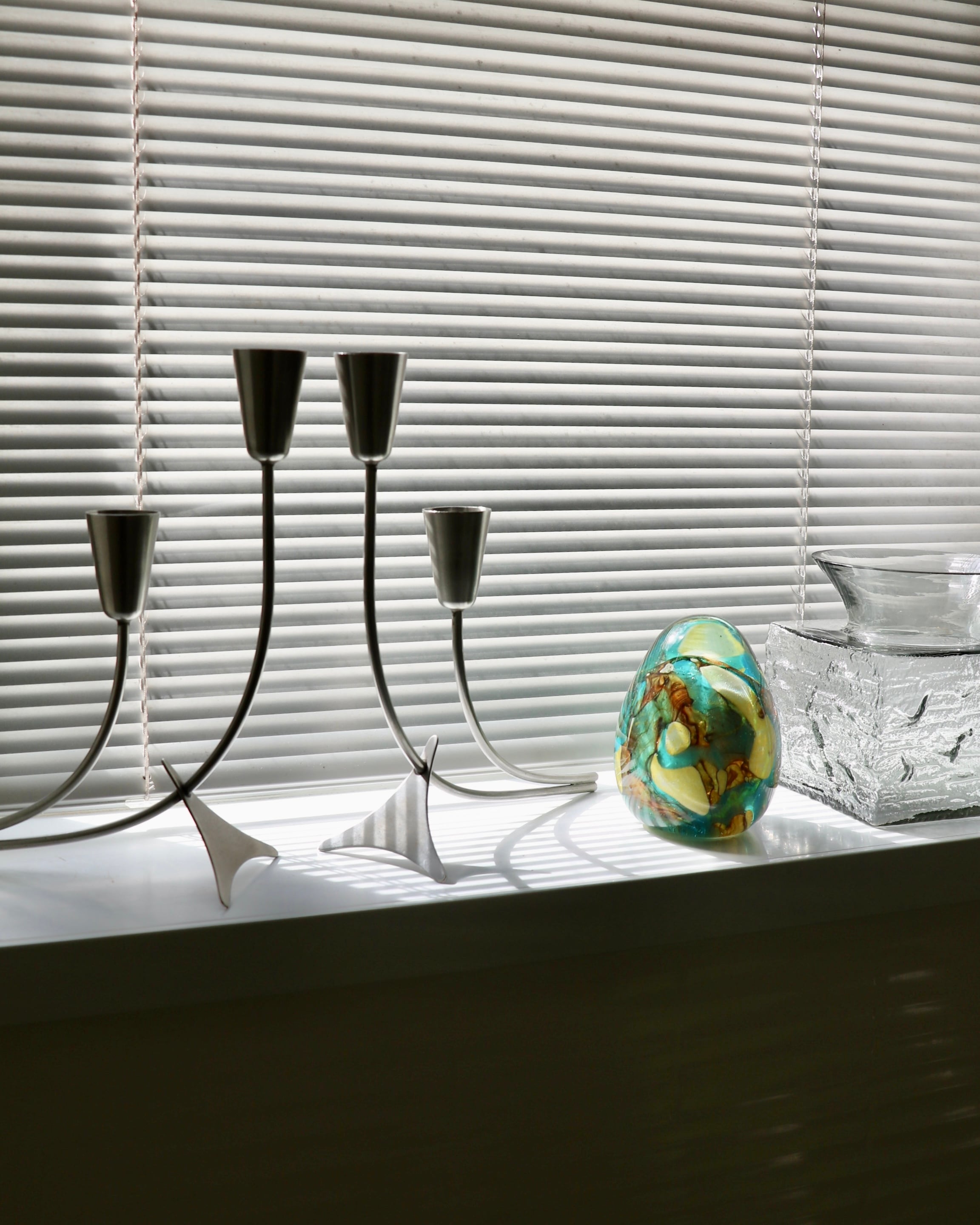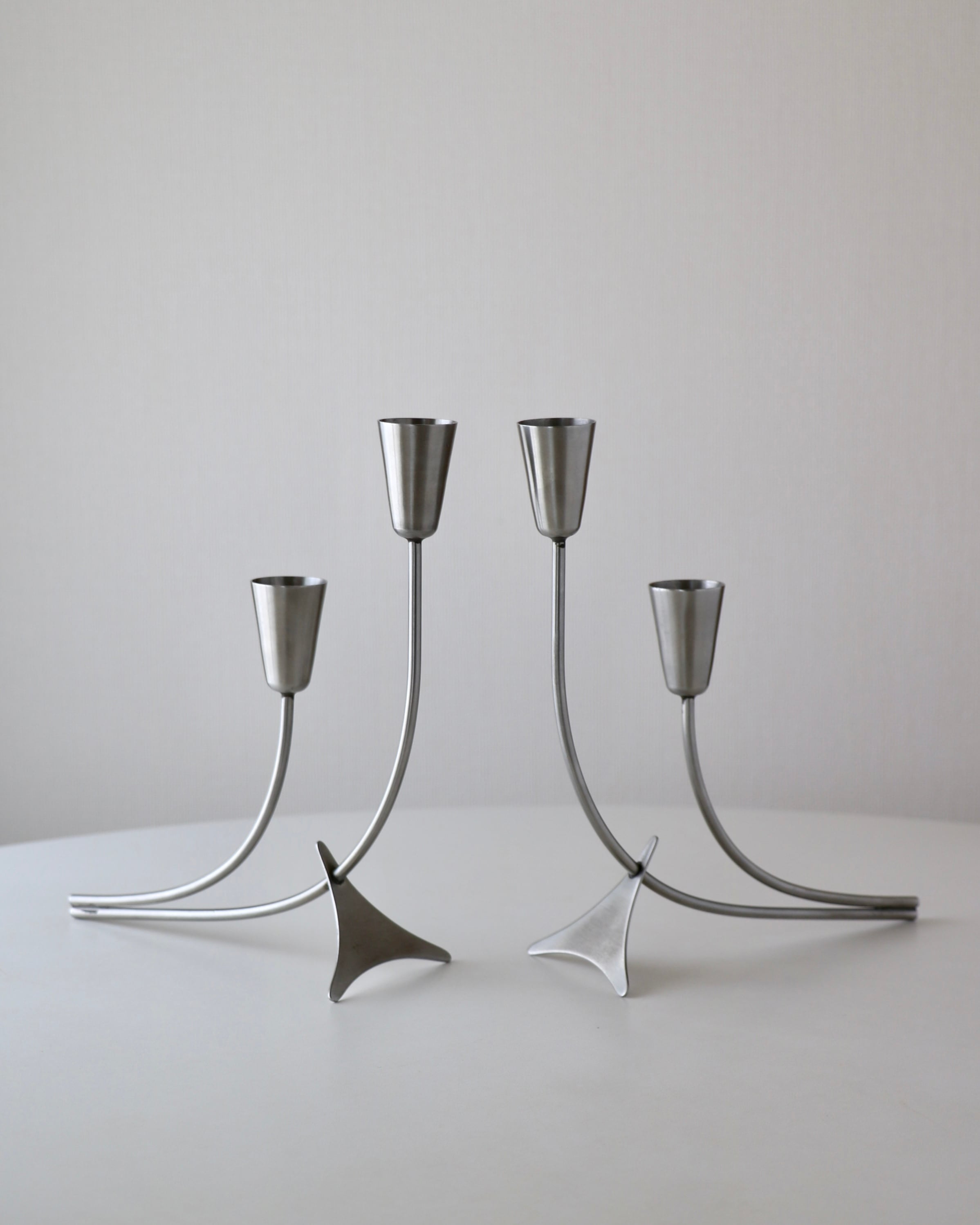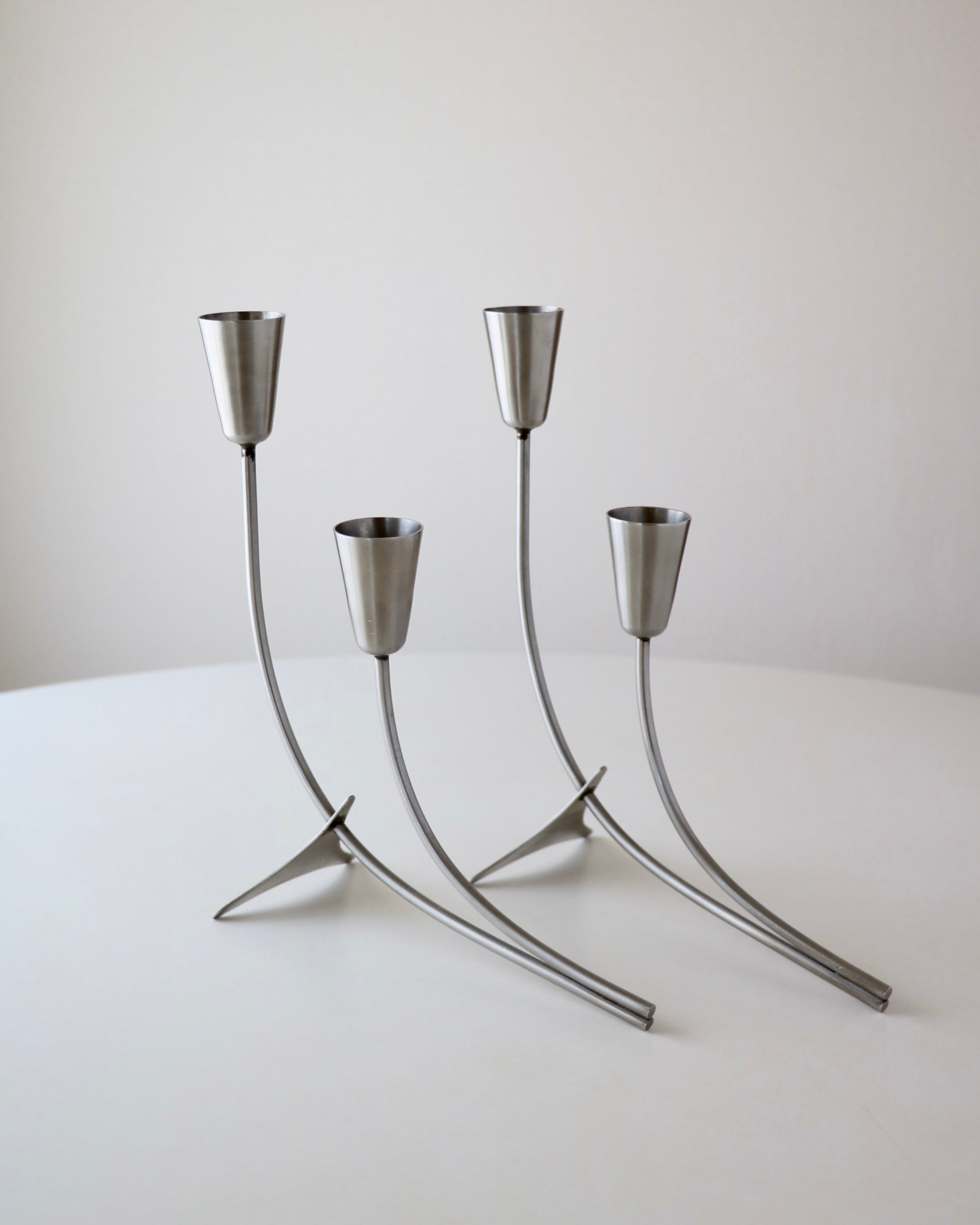 ステンレススチール製のキャンドルホルダー。