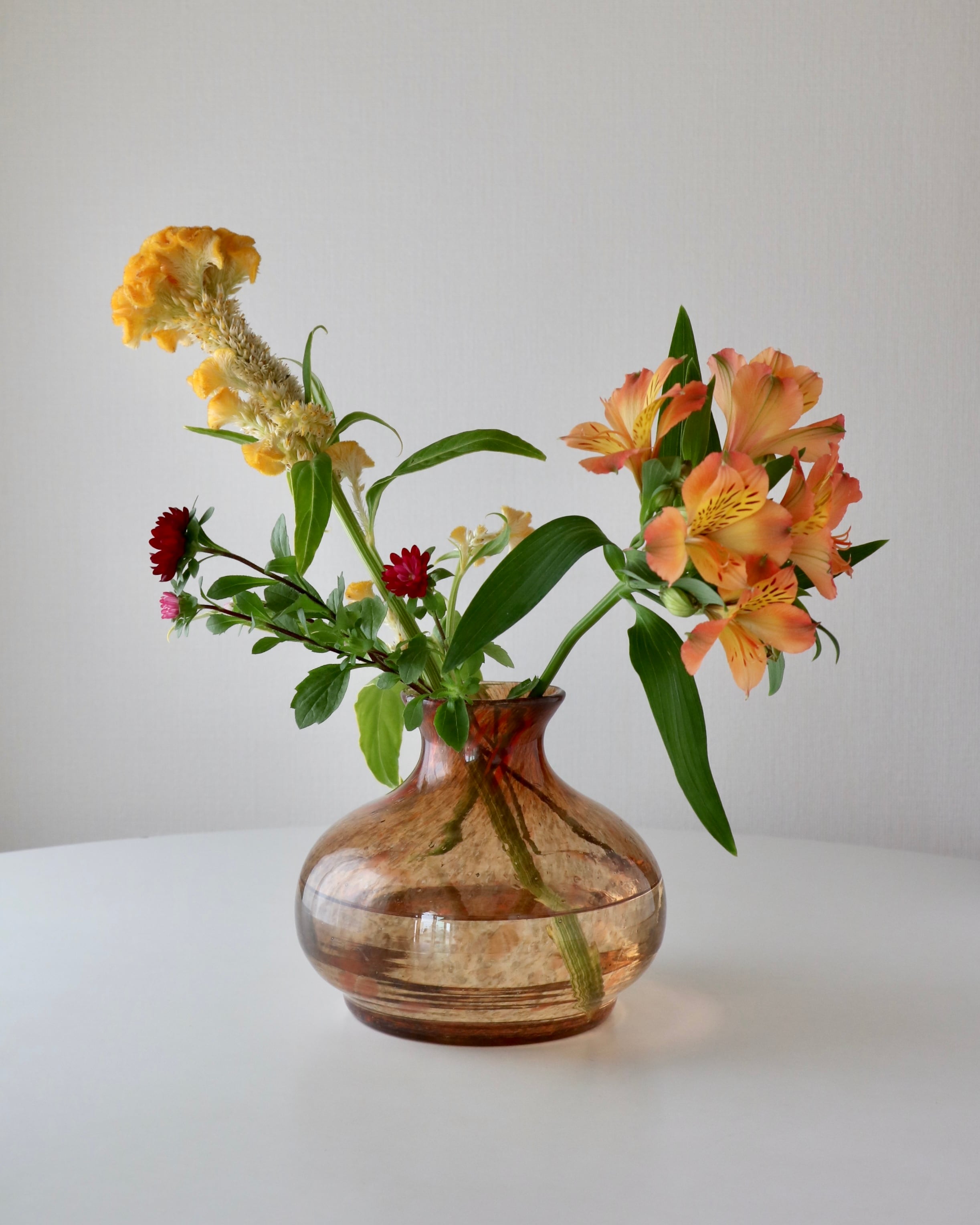 ぽってりとした安定感のあるフォルム、サイズも大きめなので、大きなお花もバランスよく飾れます。