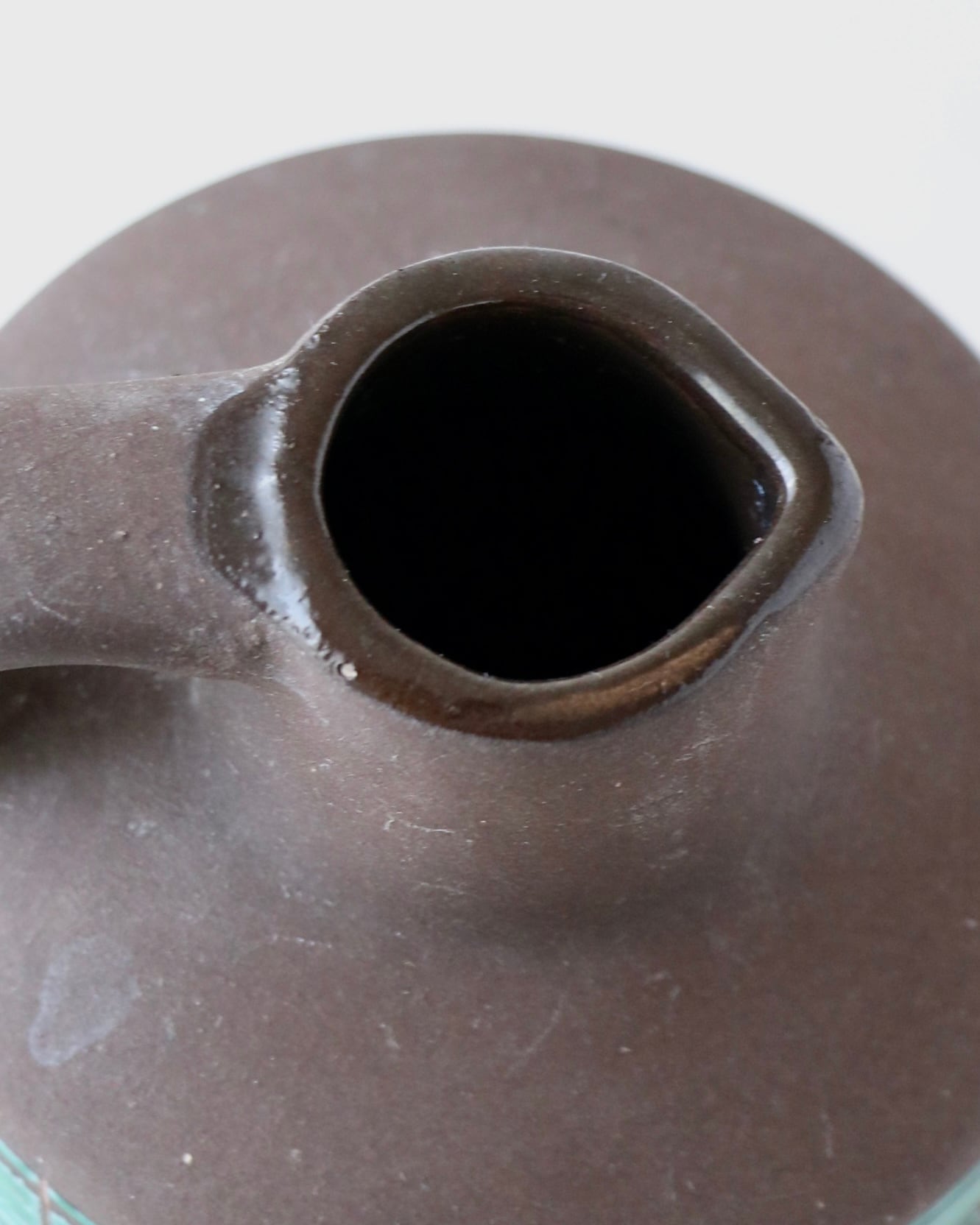 素地を活かしたベースに艶のある釉薬がブロックのように施され、スタイリッシュな模様が浮かび上がるデザイン。
