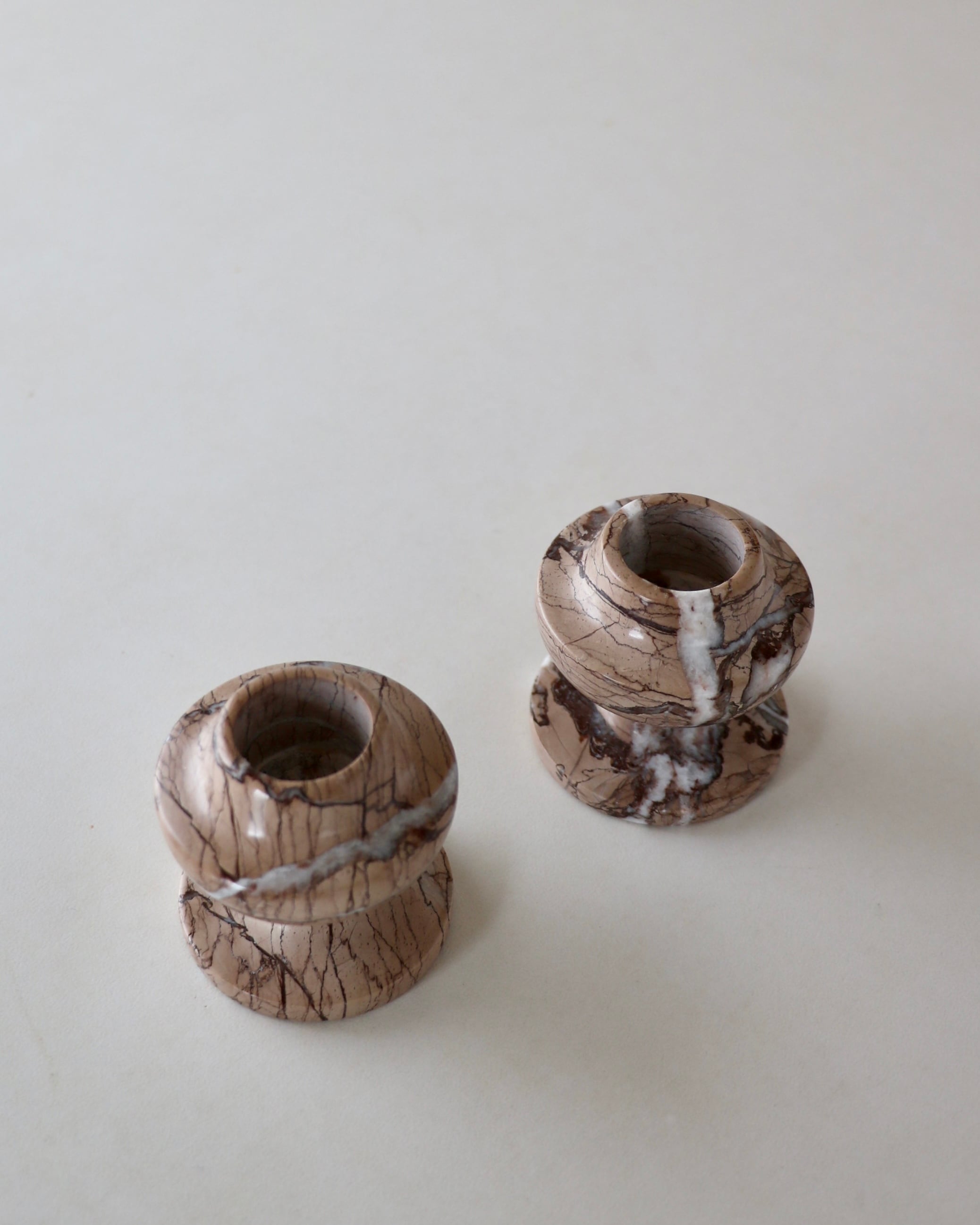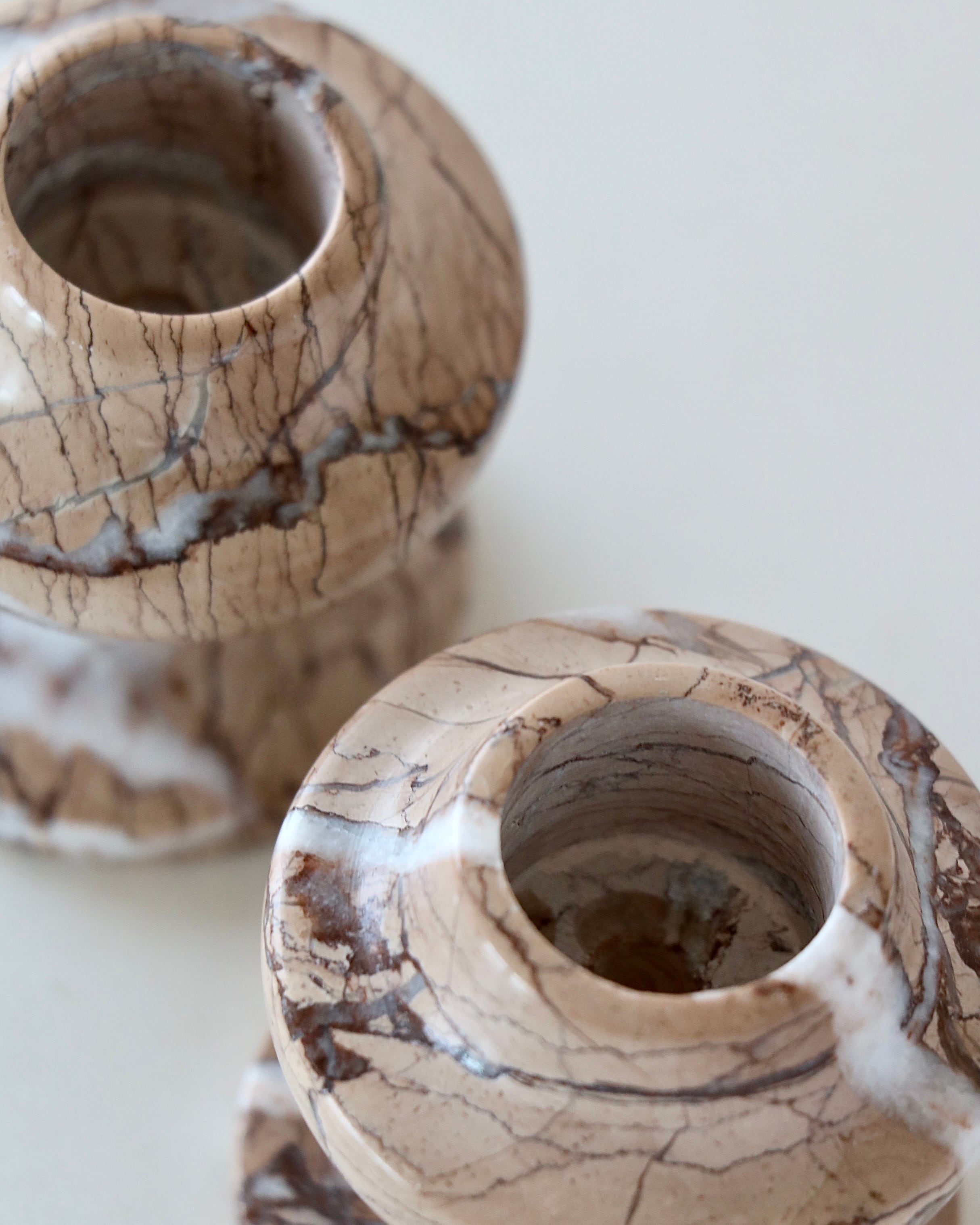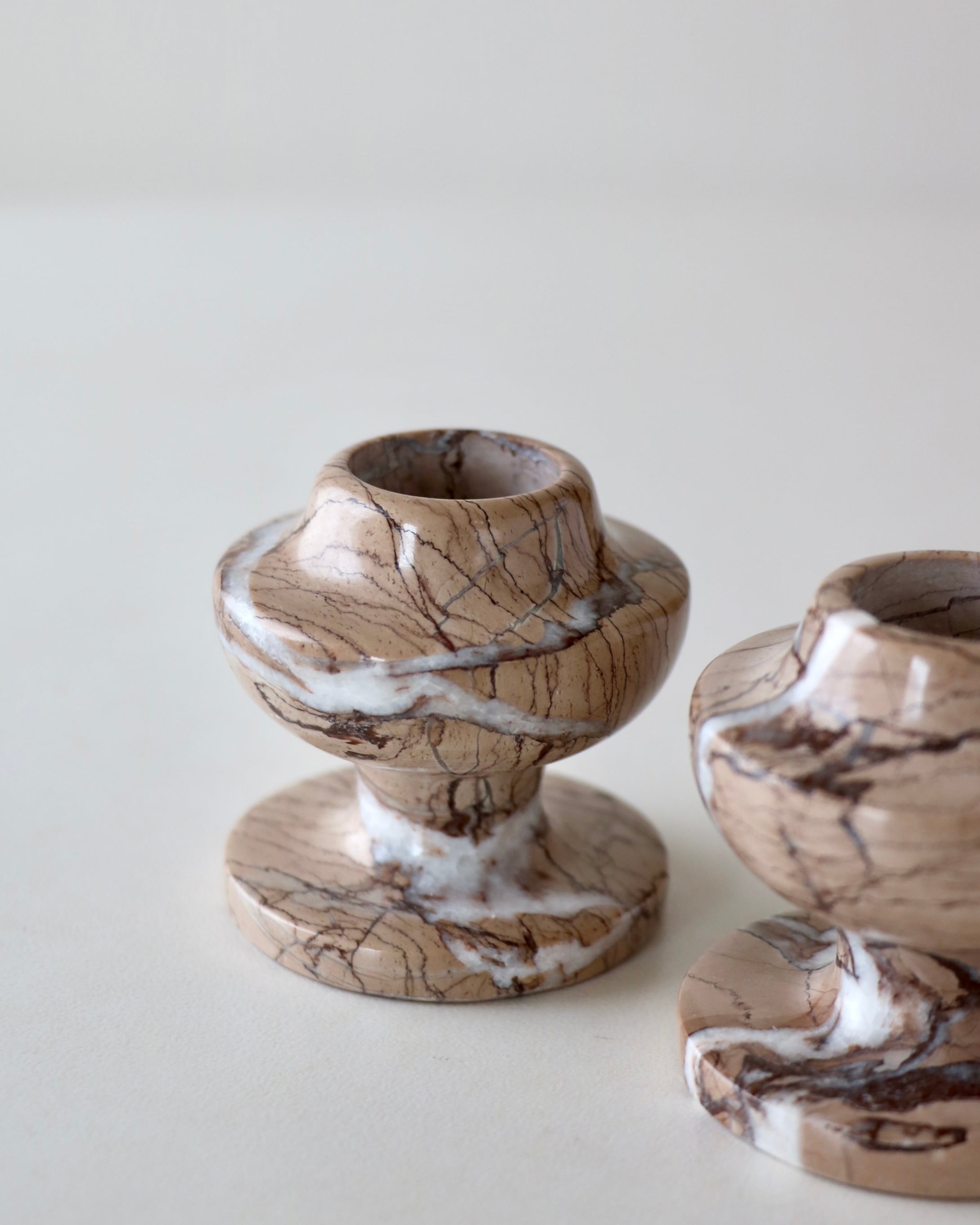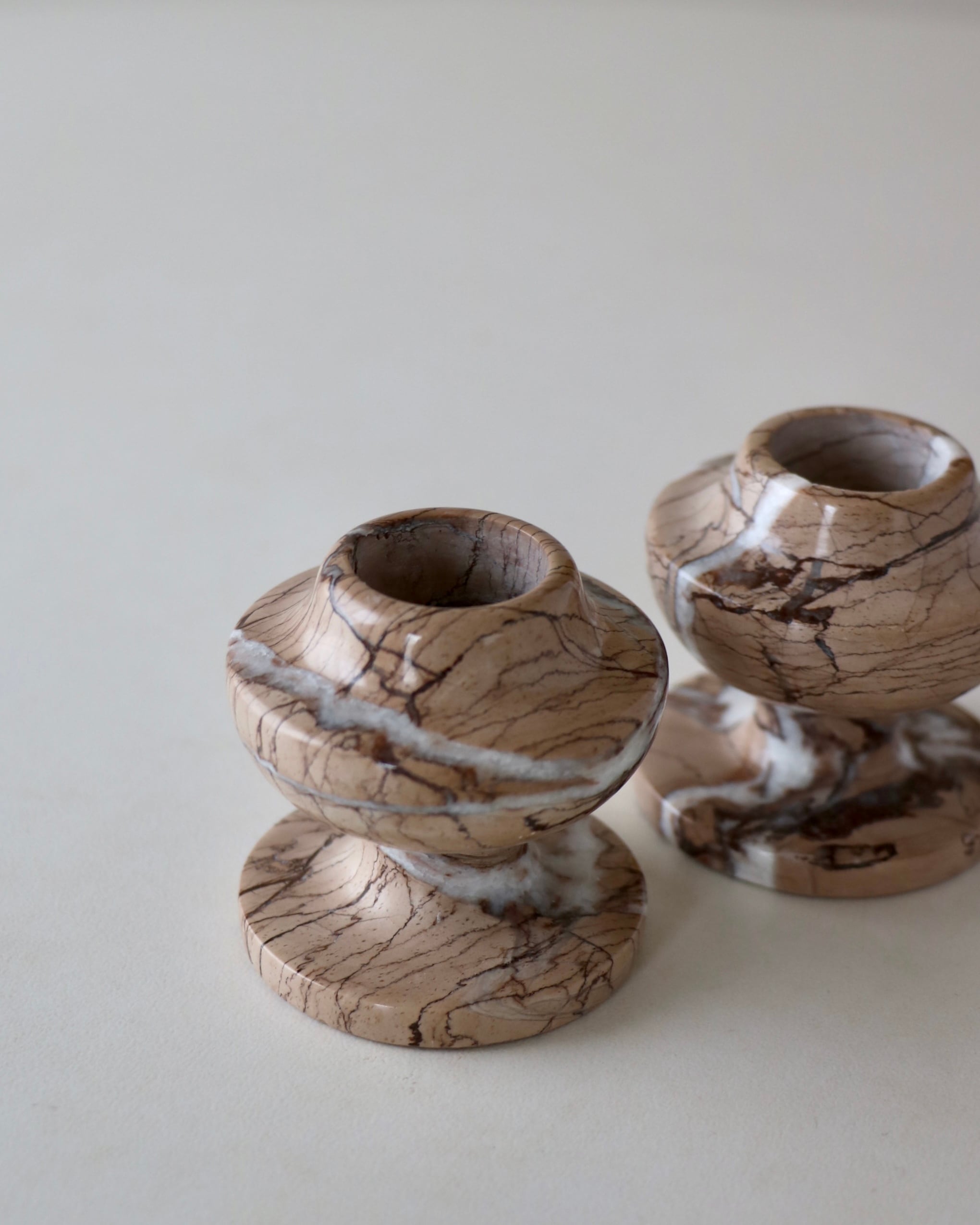 長めのテーパーキャンドルをセットしてインテリアに高さも出すのも良いですし、ショートキャンドルをセットしてディスプレイの前面に配置するのもアリ。