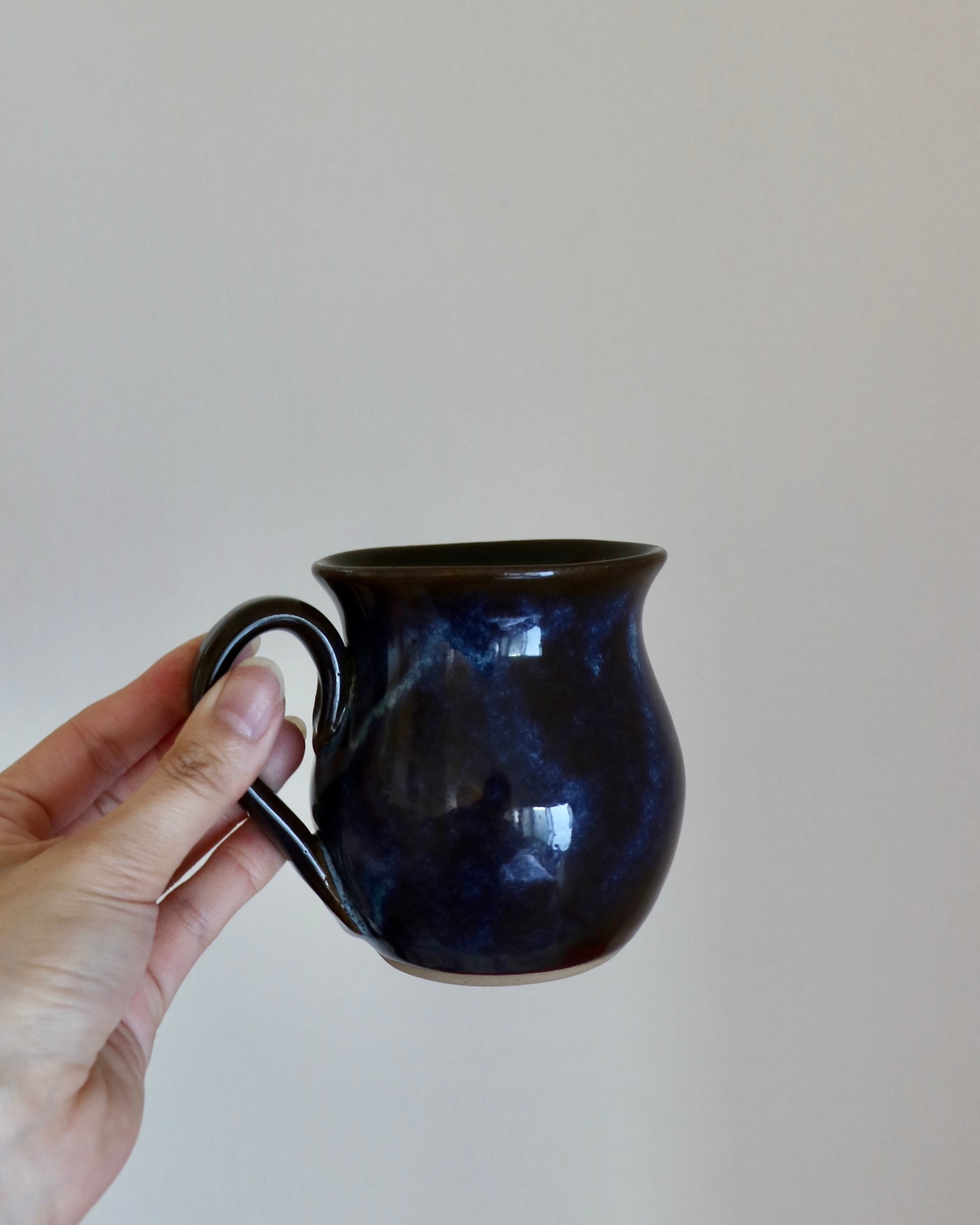 光に当たると一層艶めく、深みのあるインディゴブルーとブラウンの釉薬がとにかく美しい。