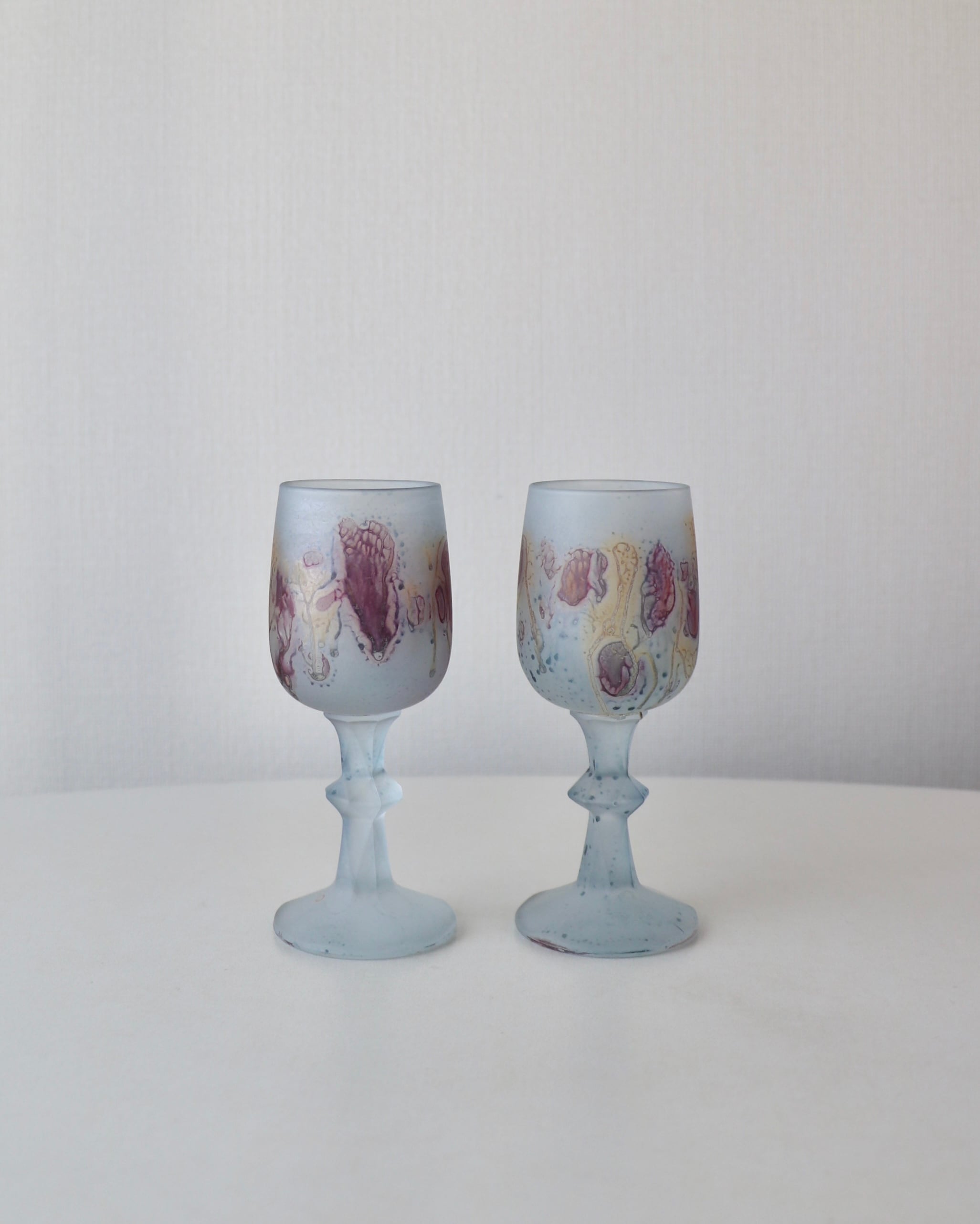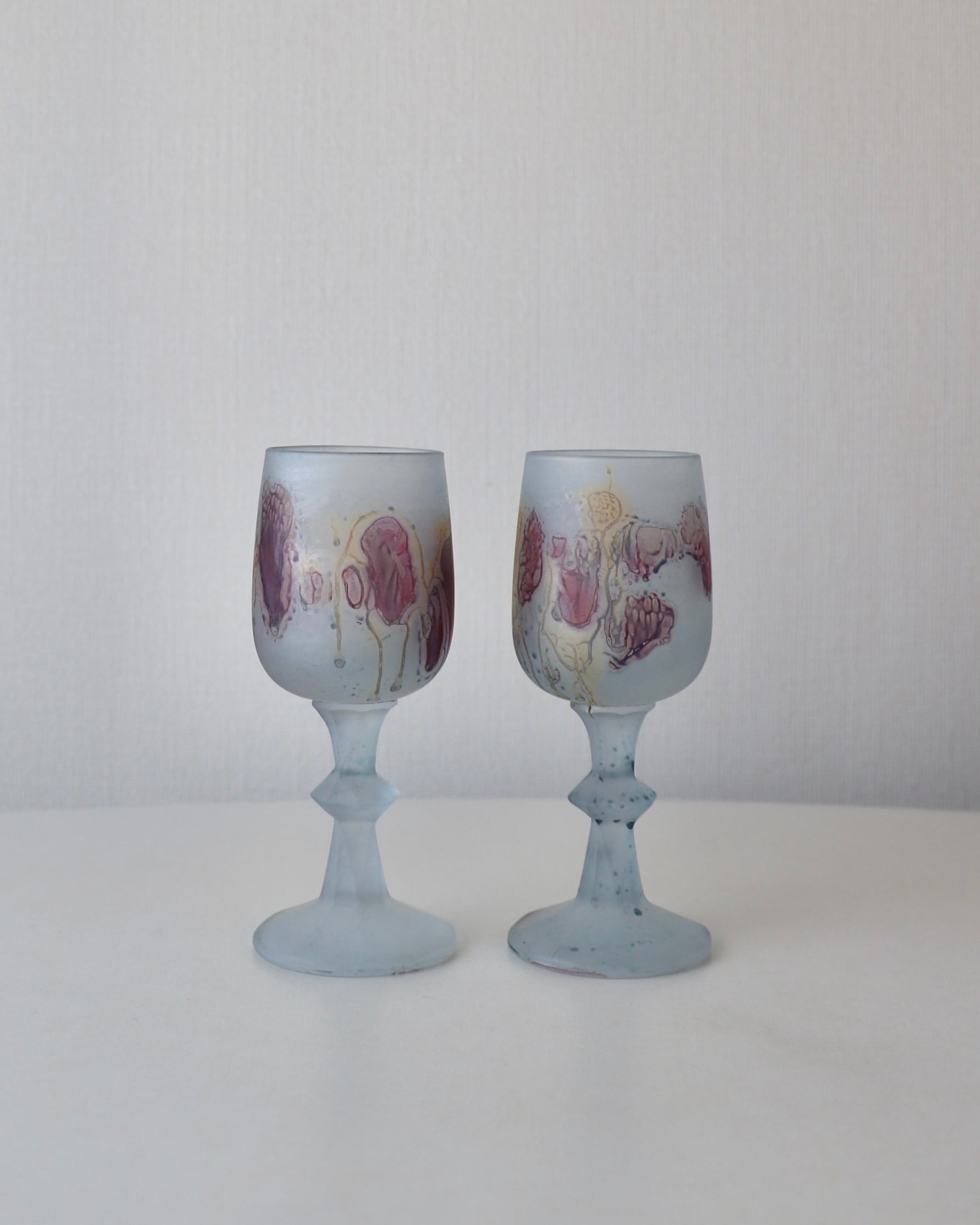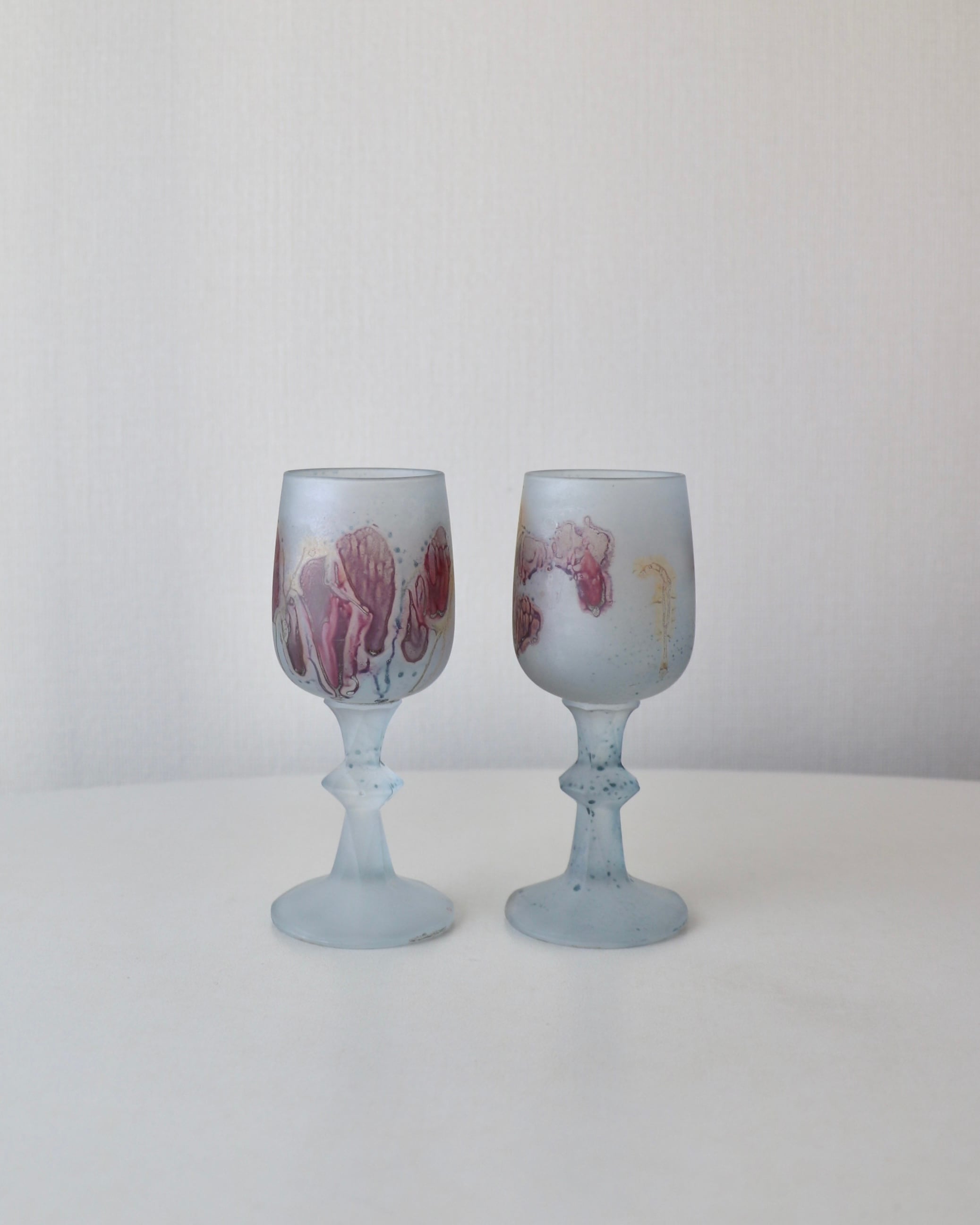 色ガラスに溶け込む水彩画のような模様、フロストガラスの質感が特徴的で、ヴィンテージアイテムとして根強い人気を誇っているルーベンガラス。