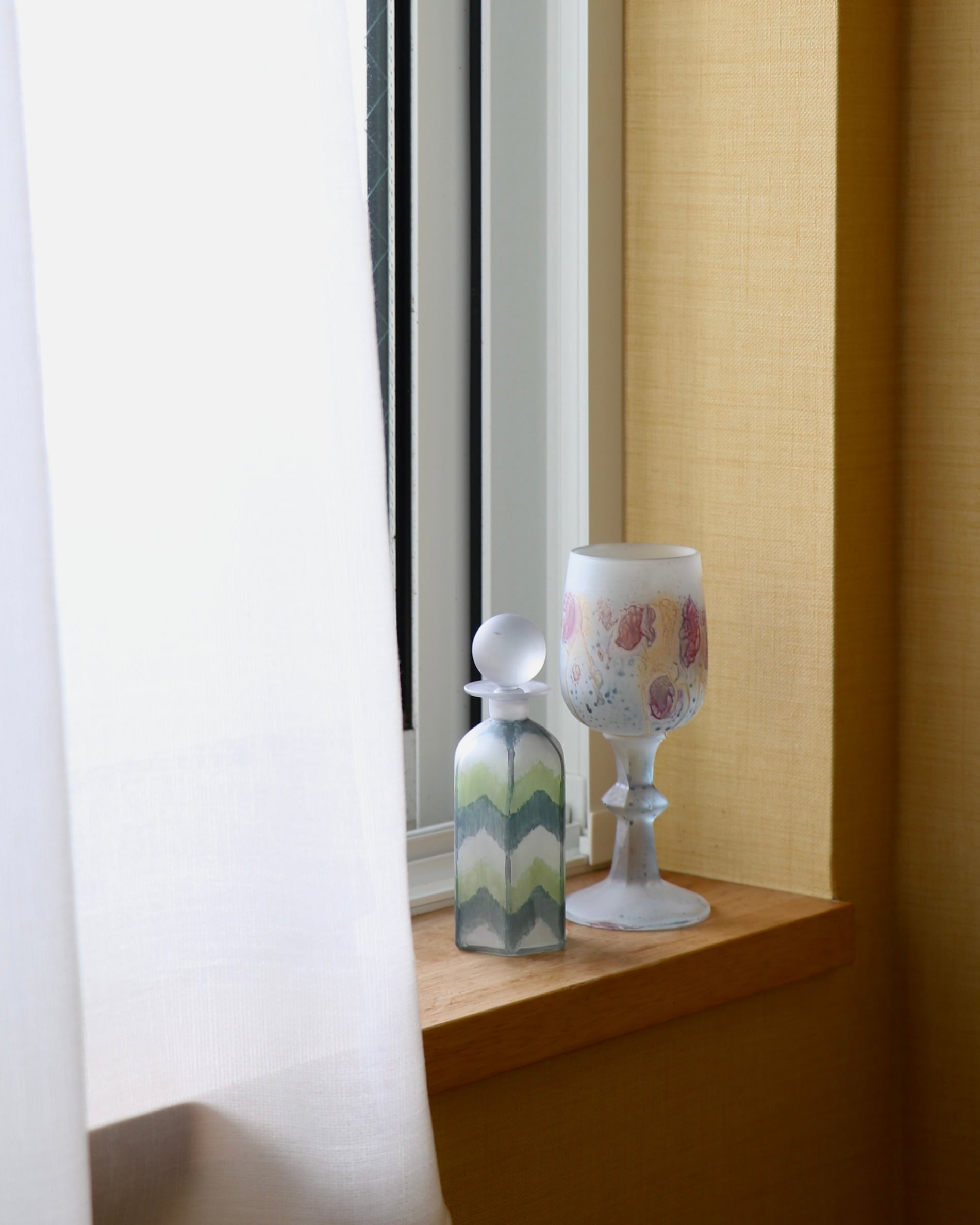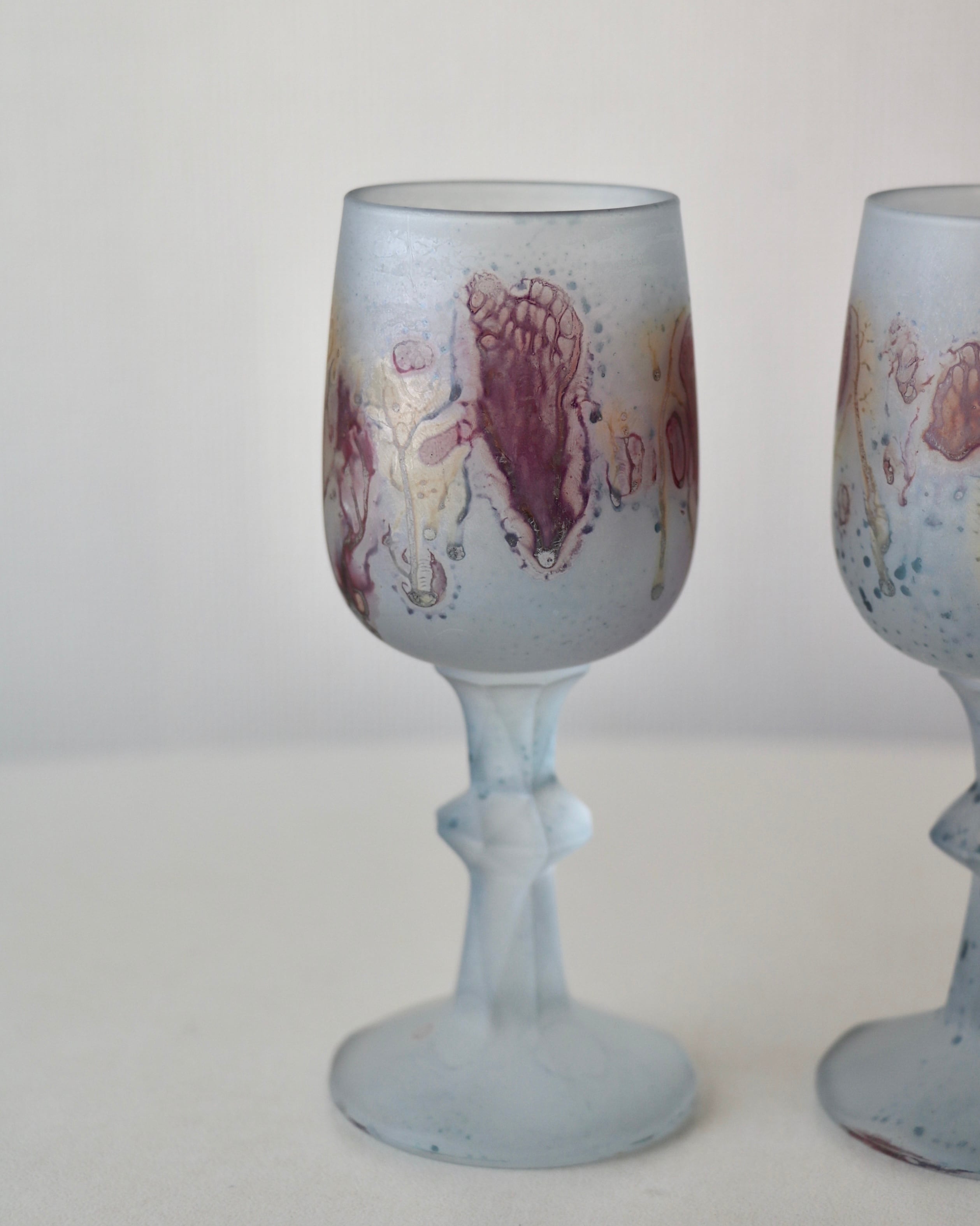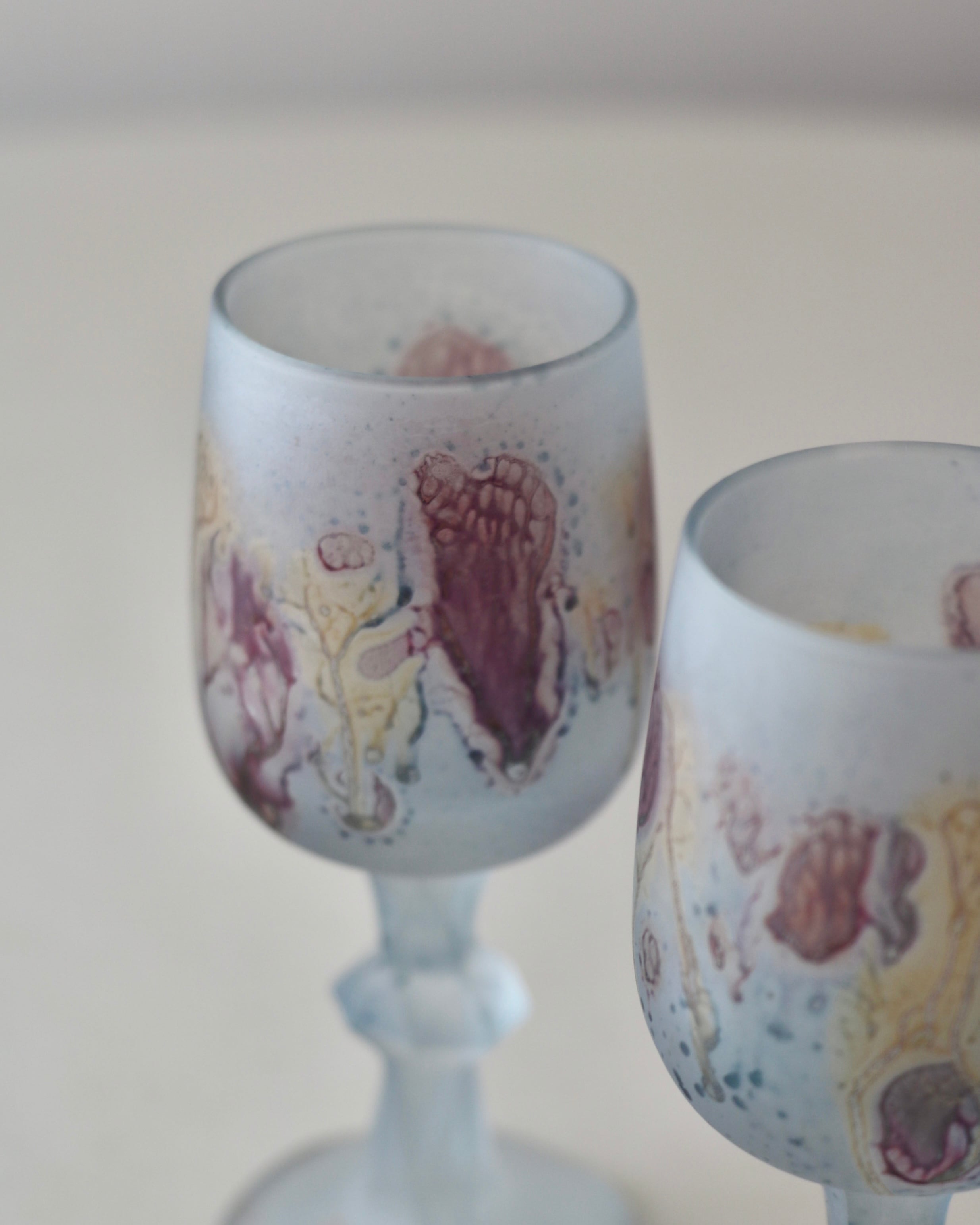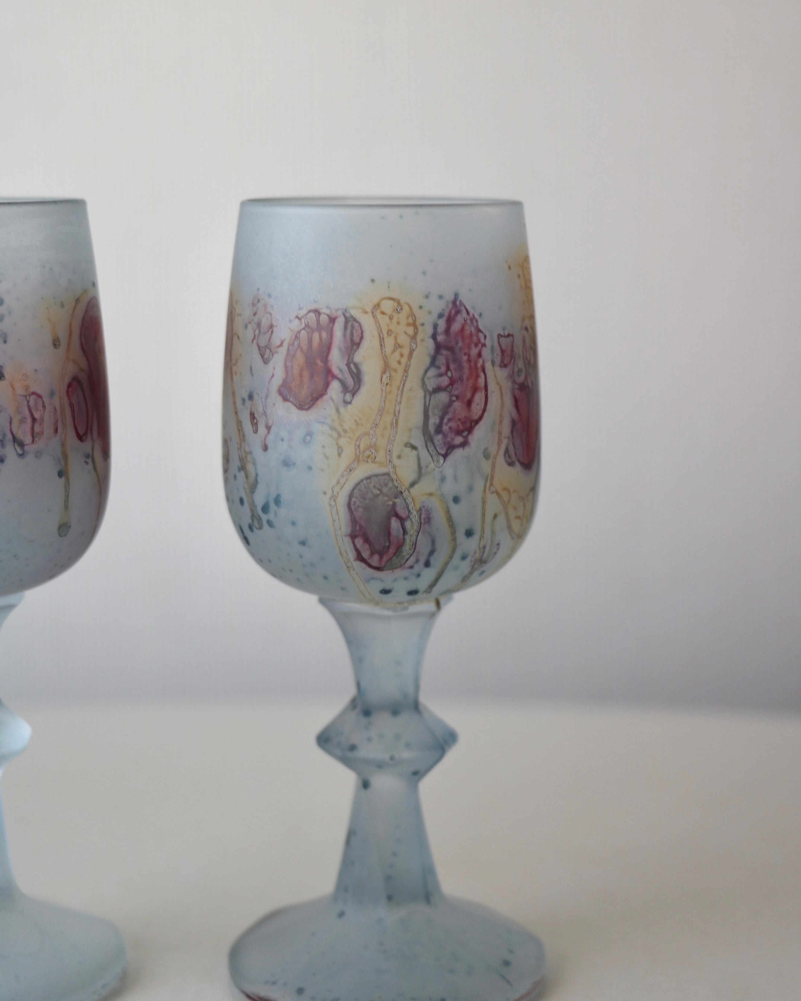 色ガラスに溶け込む水彩画のような模様、フロストガラスの質感が特徴的で、ヴィンテージアイテムとして根強い人気を誇っているルーベンガラス。