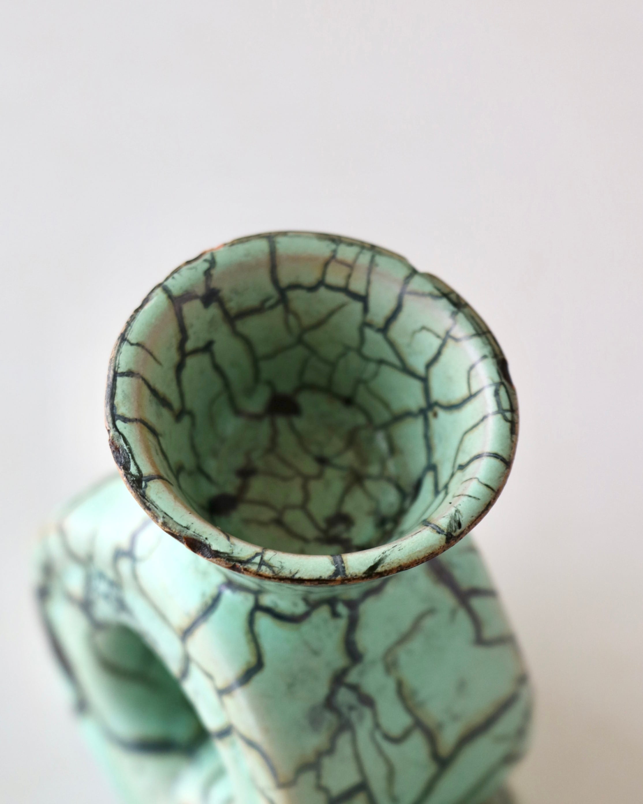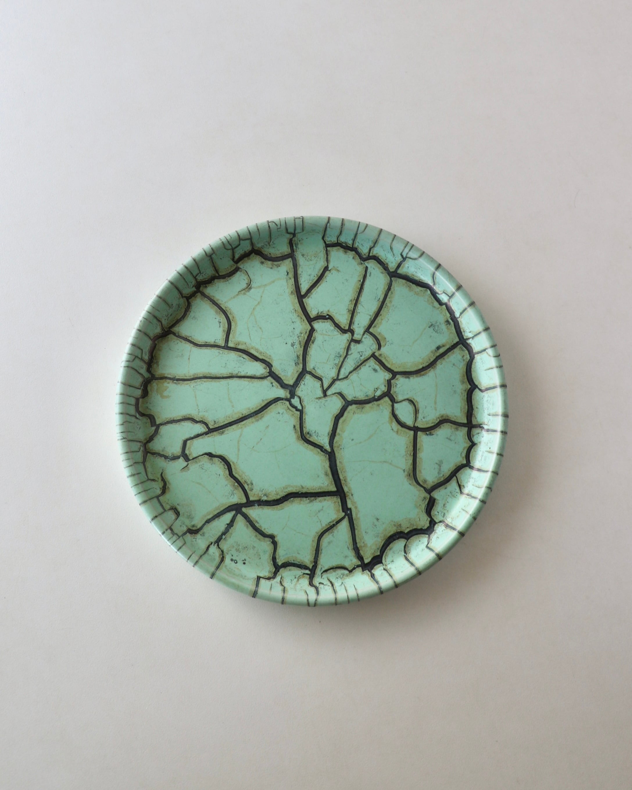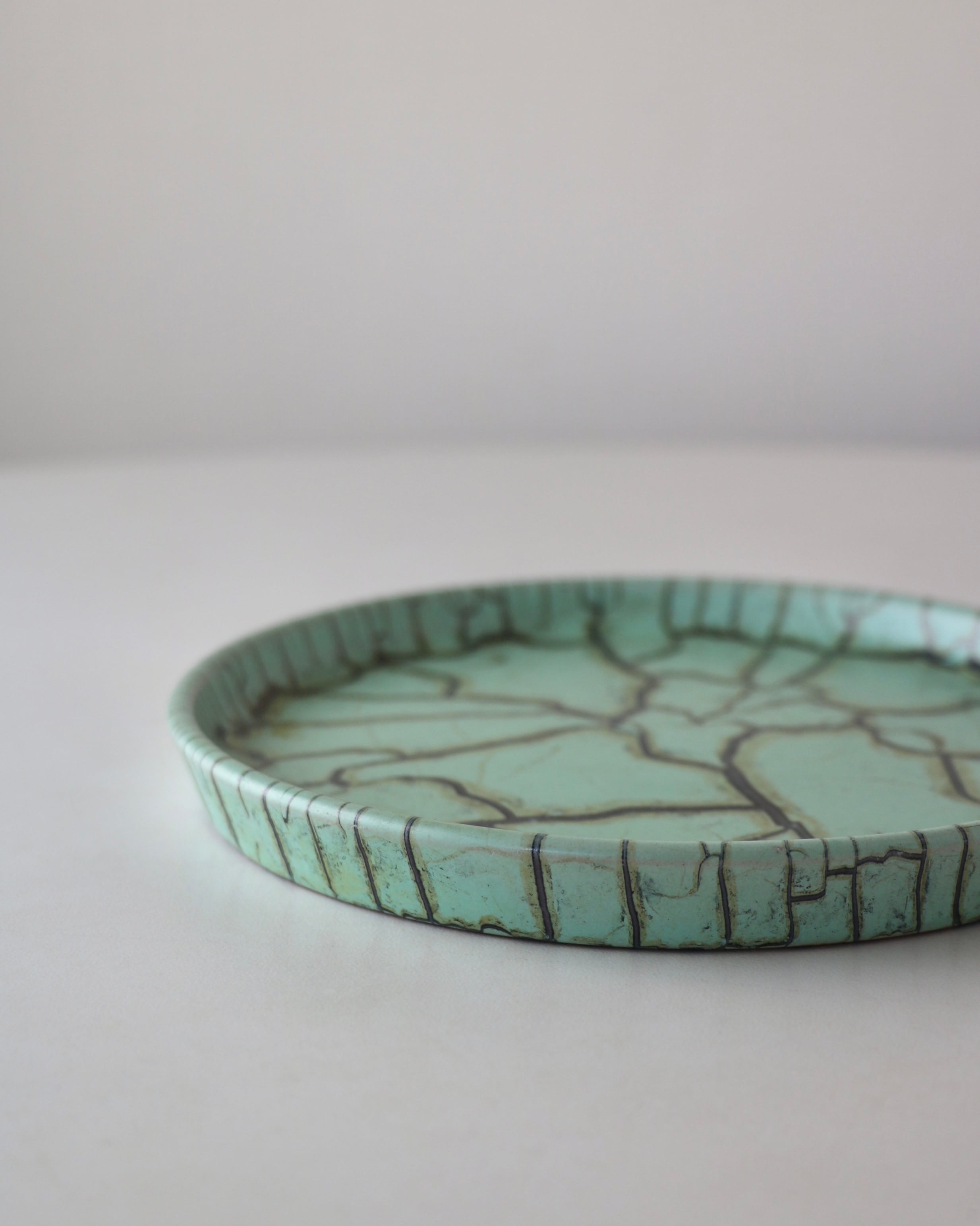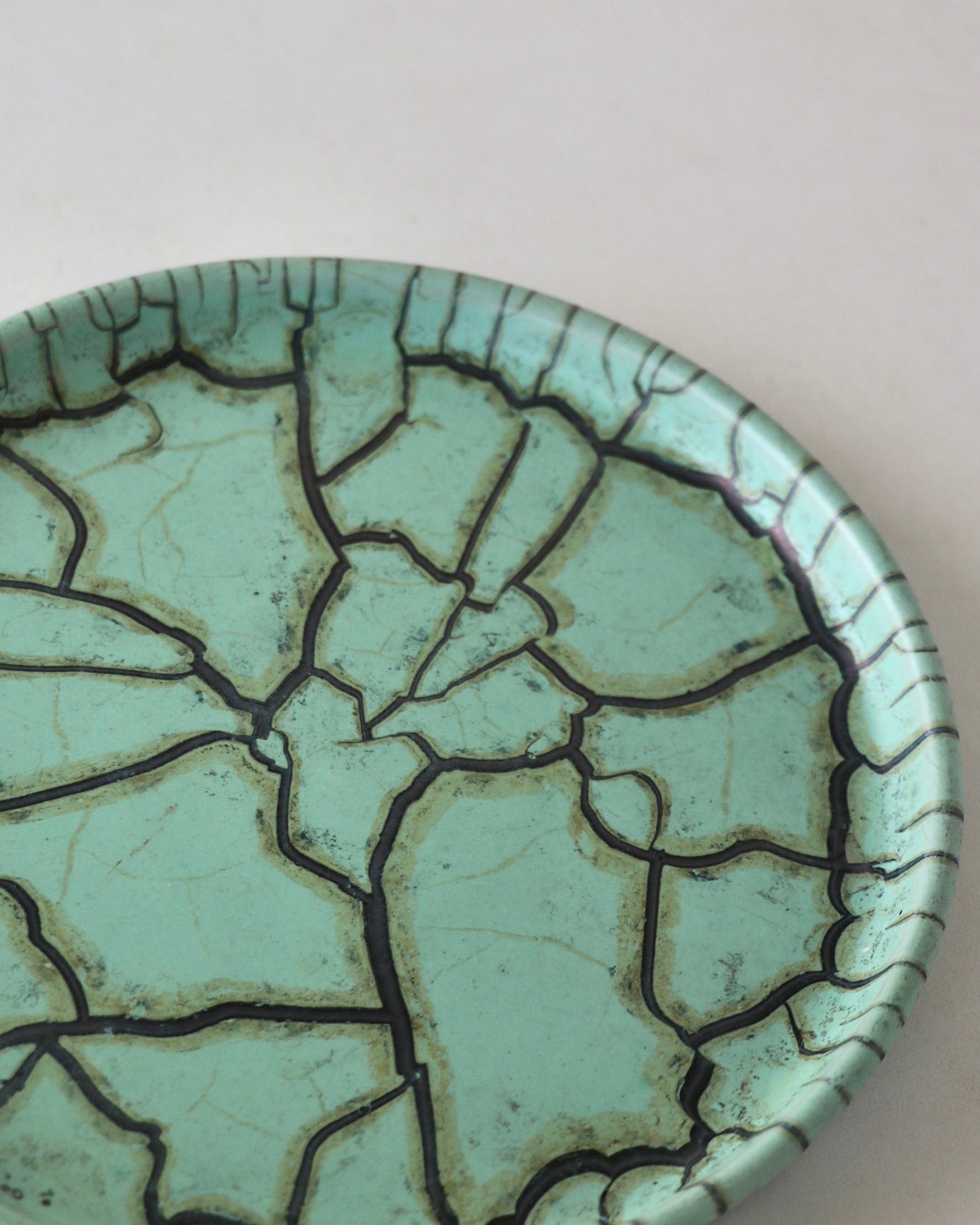 パッと目を引くミントグリーンとパワフルなクラック模様のデザインがとても珍しかったので仕入れてみました。