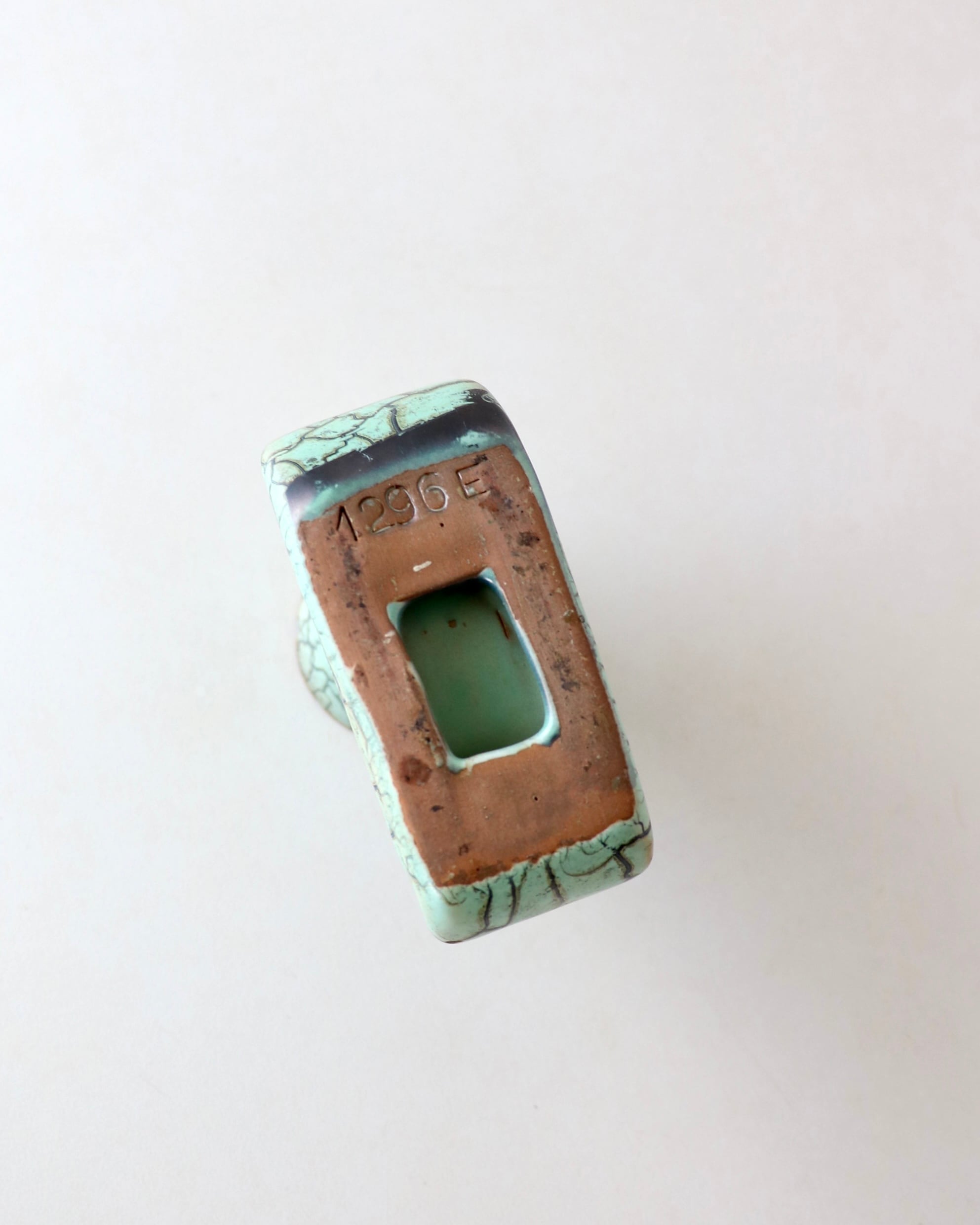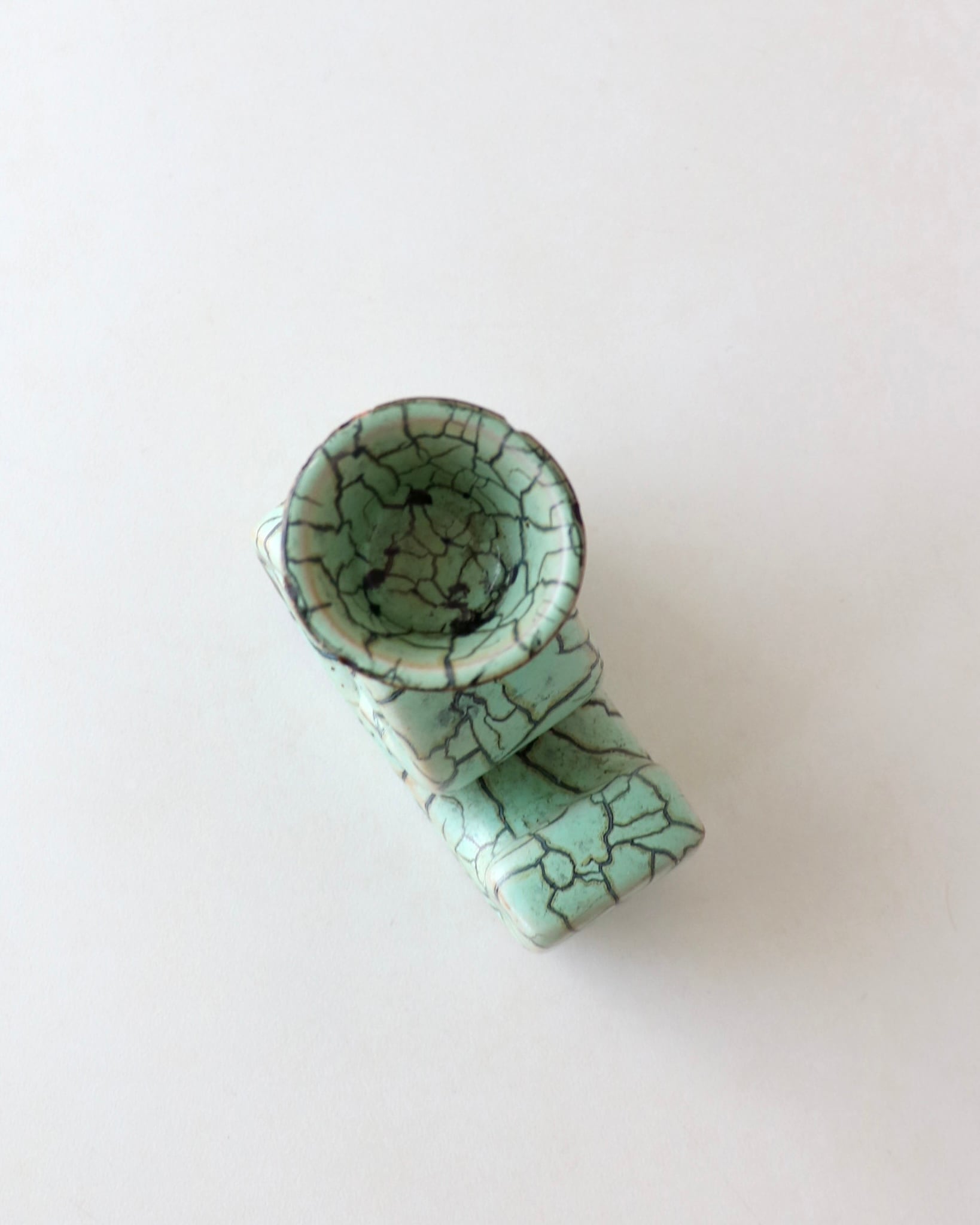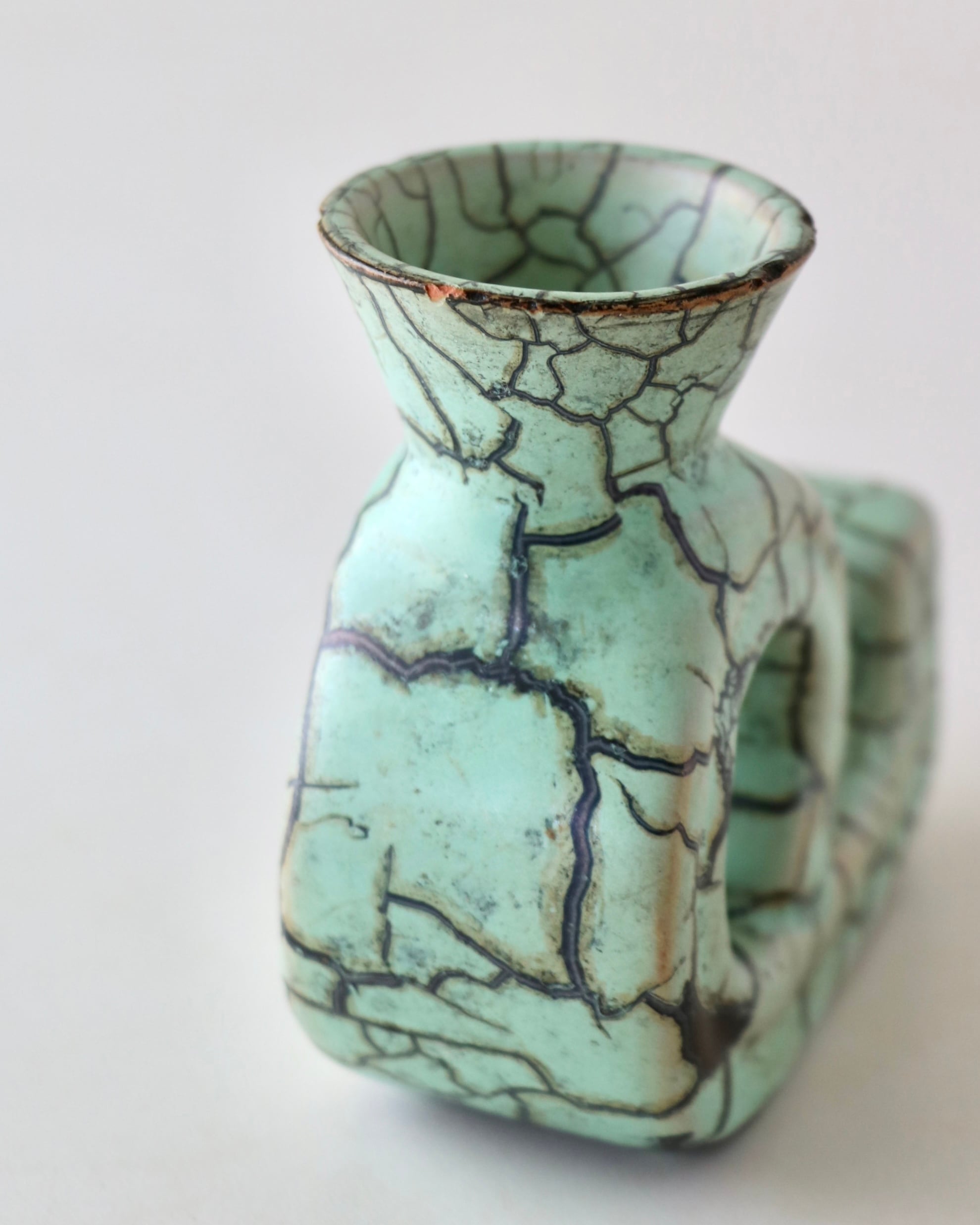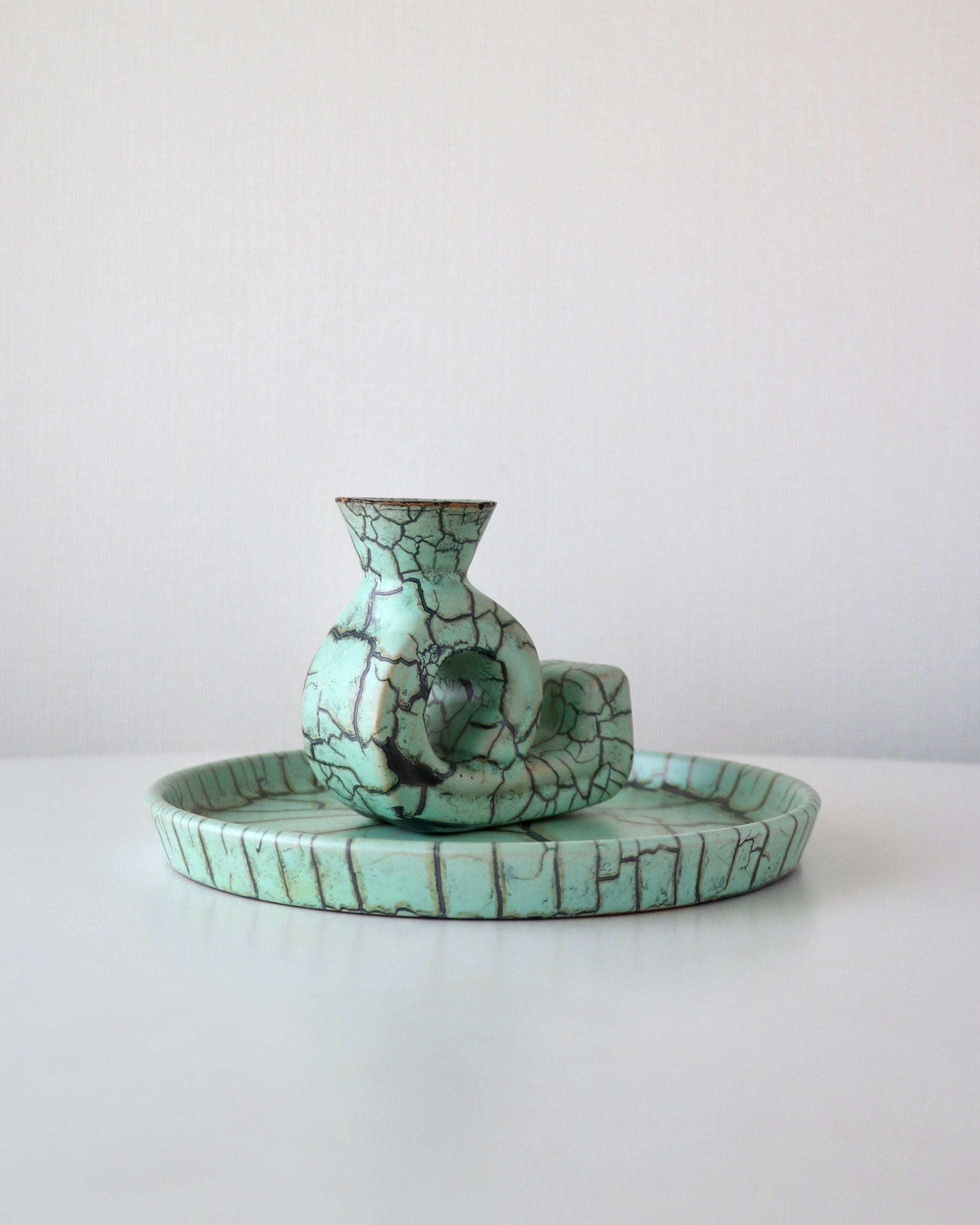 パッと目を引くミントグリーンとパワフルなクラック模様のデザインがとても珍しかったので仕入れてみました。