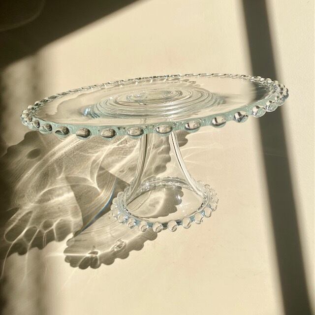 縁と底に施されたつぶつぶが可愛らしいケーキスタンド。