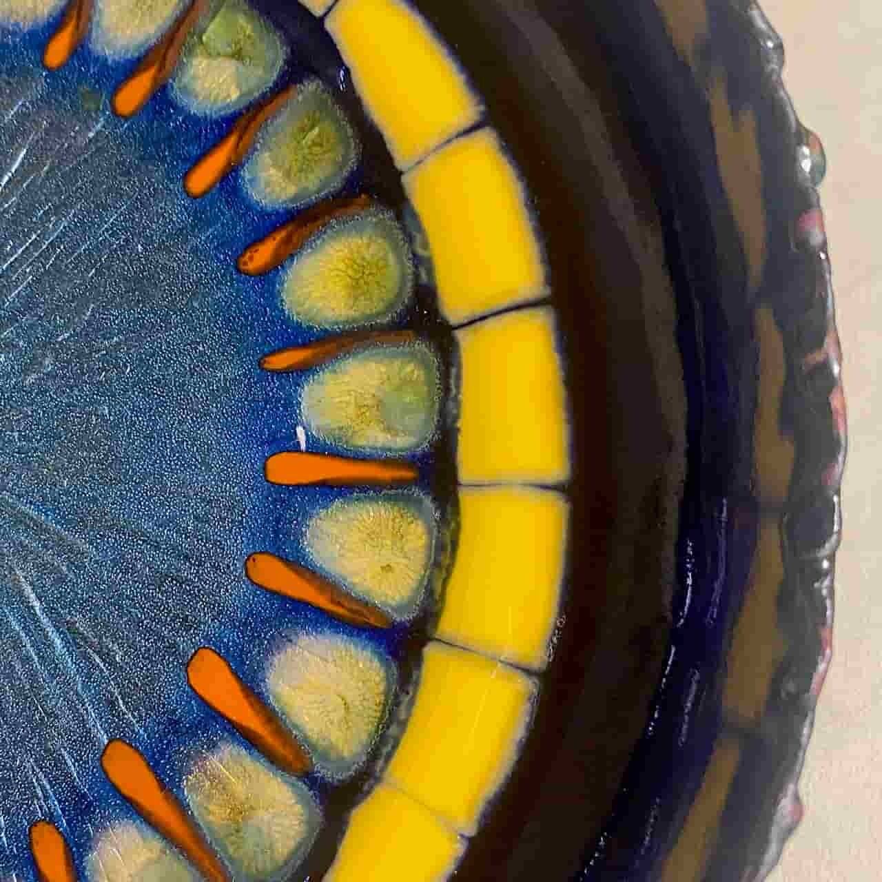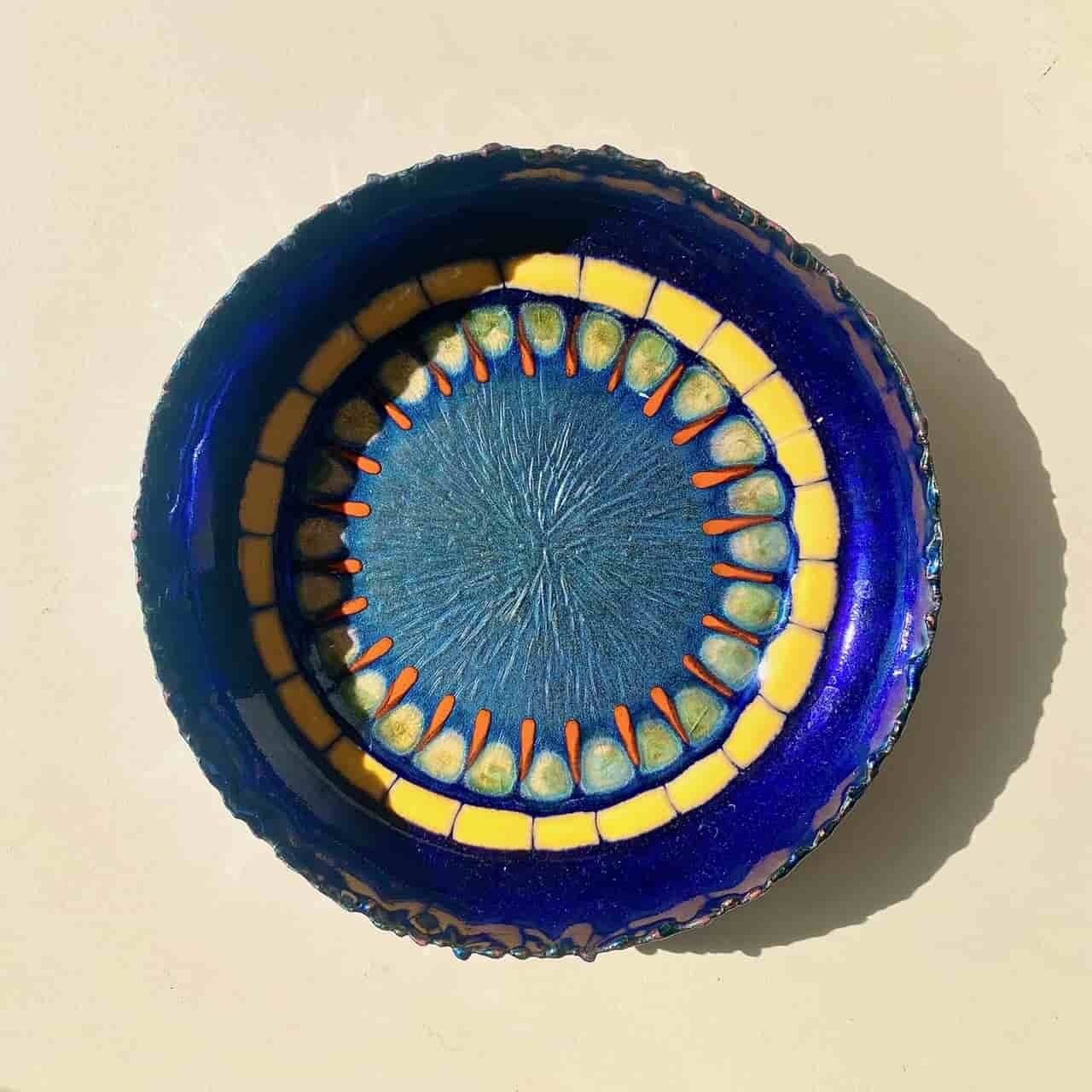 銅にサイケデリックなエナメル釉薬が施され、質感・色彩・模様、どこをとっても一際目を引くプレート。