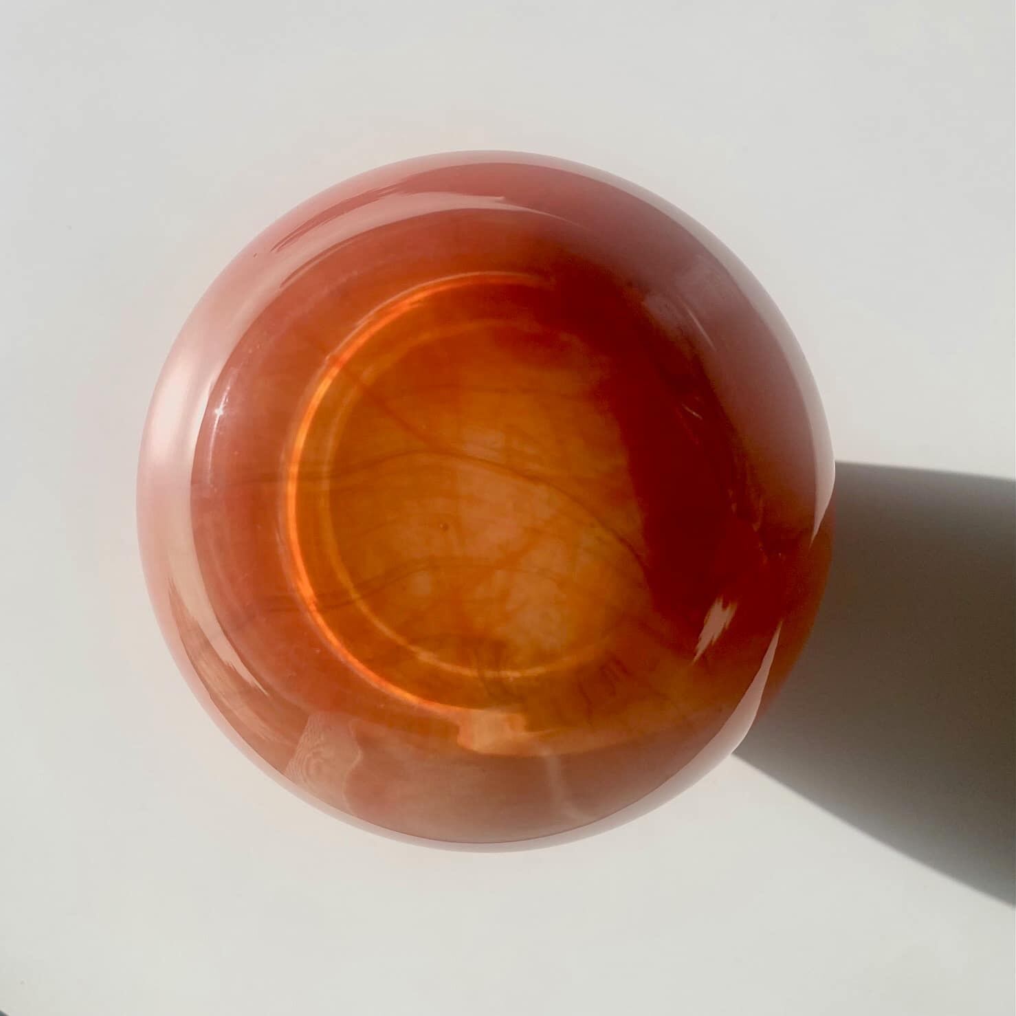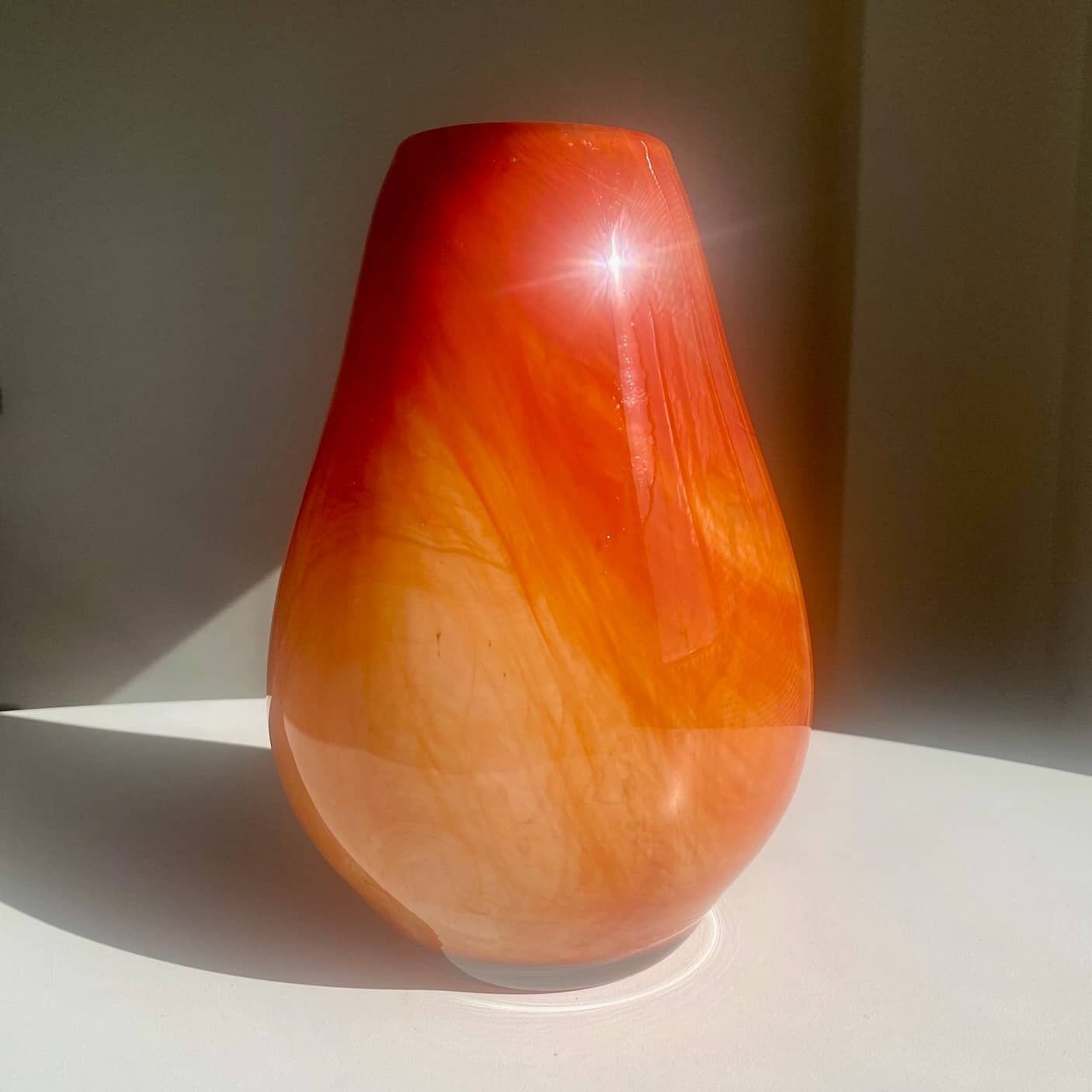 ぽってりずっしりな可愛らしいガラスに、まるで糸のようなマーブル模様の繊細さが光ります。