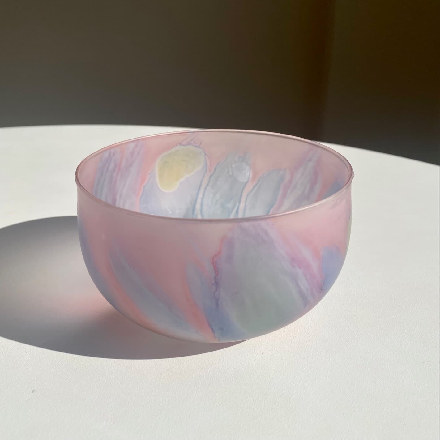 色ガラスに溶け込む水彩画のような模様、フロストガラスの質感が特徴的で、ヴィンテージアイテムとして根強い人気を誇っているルーベンガラス。