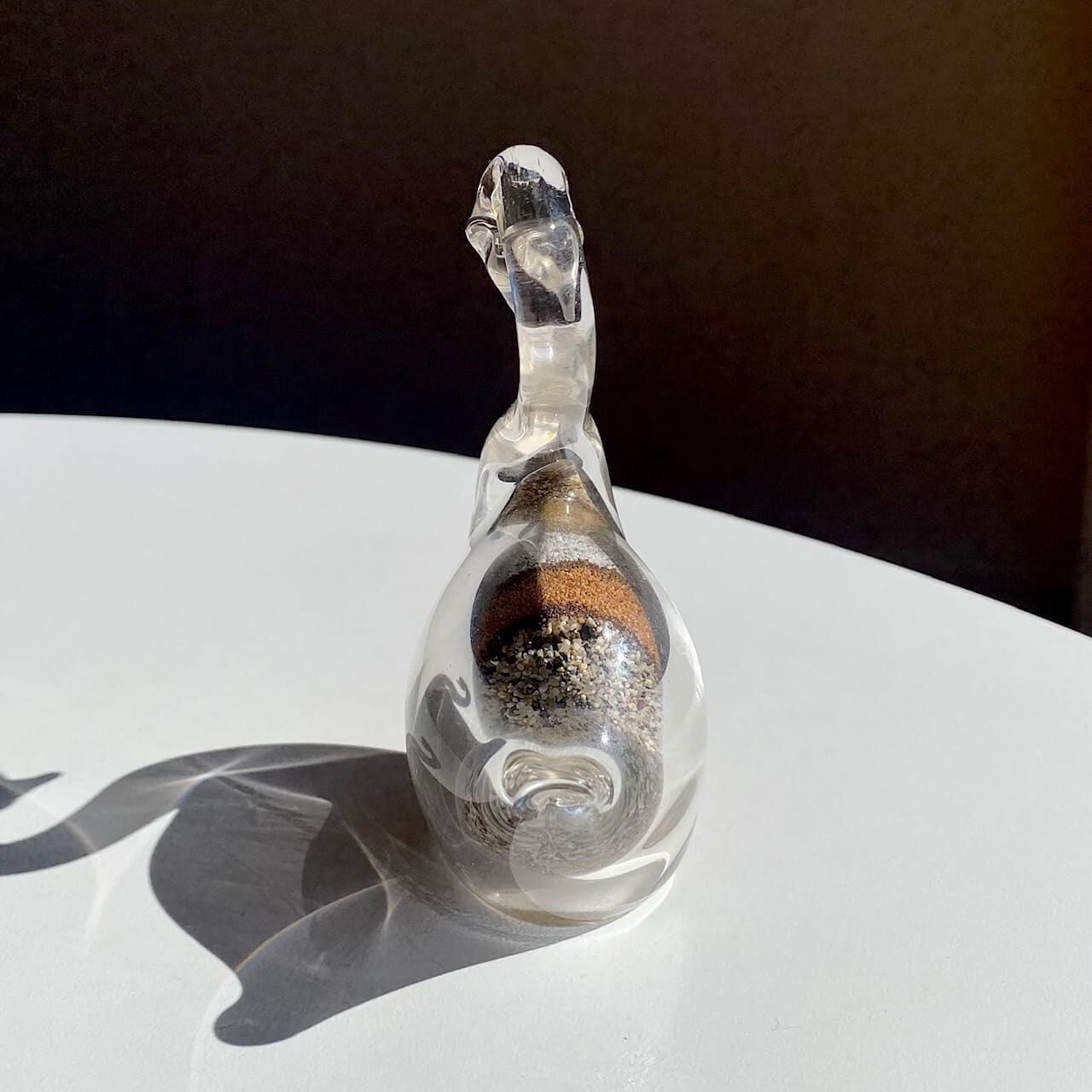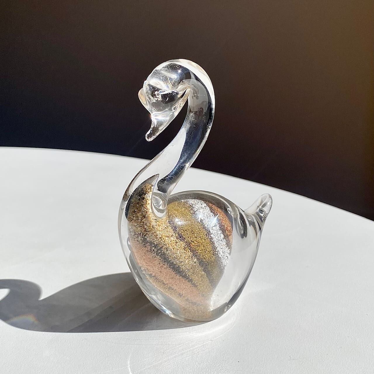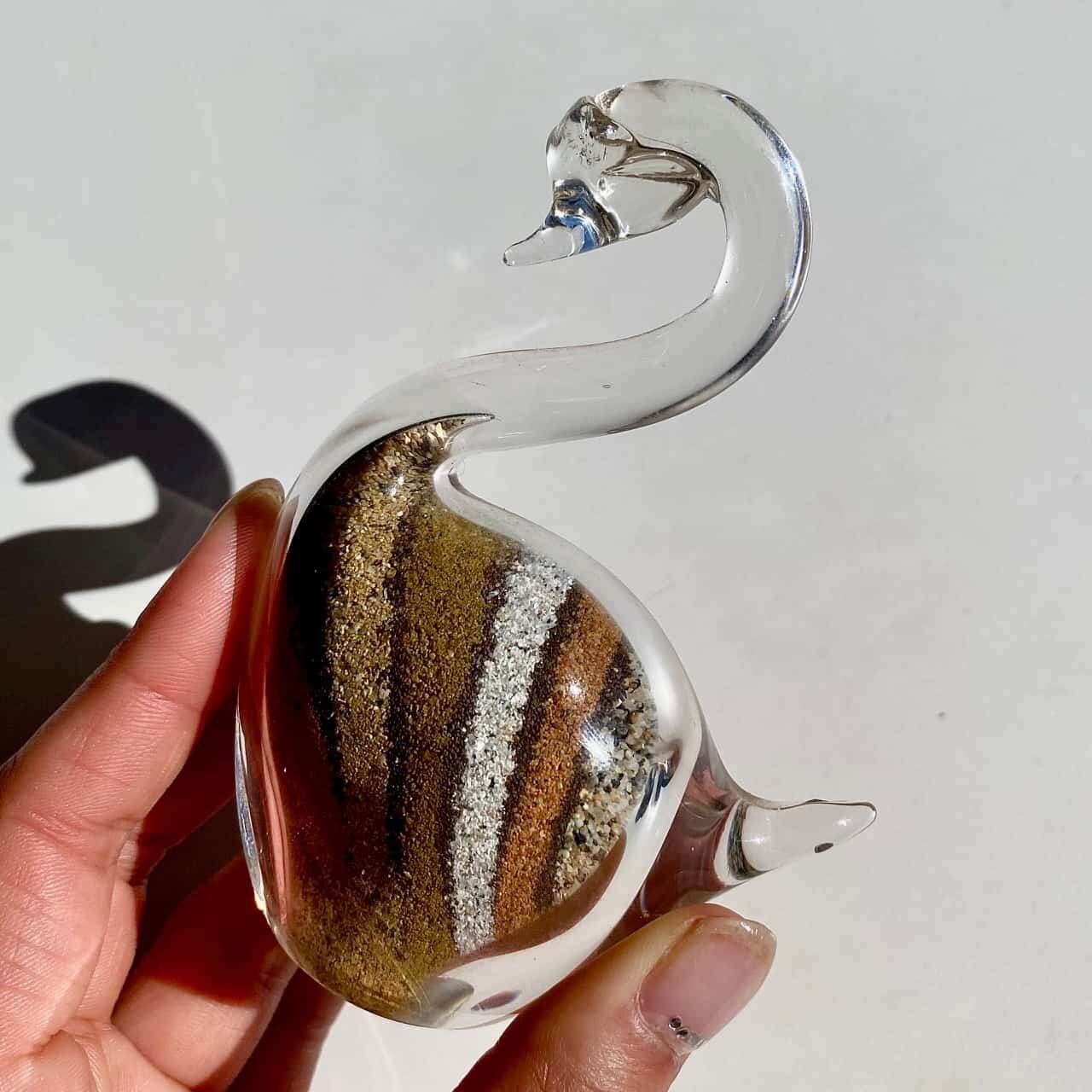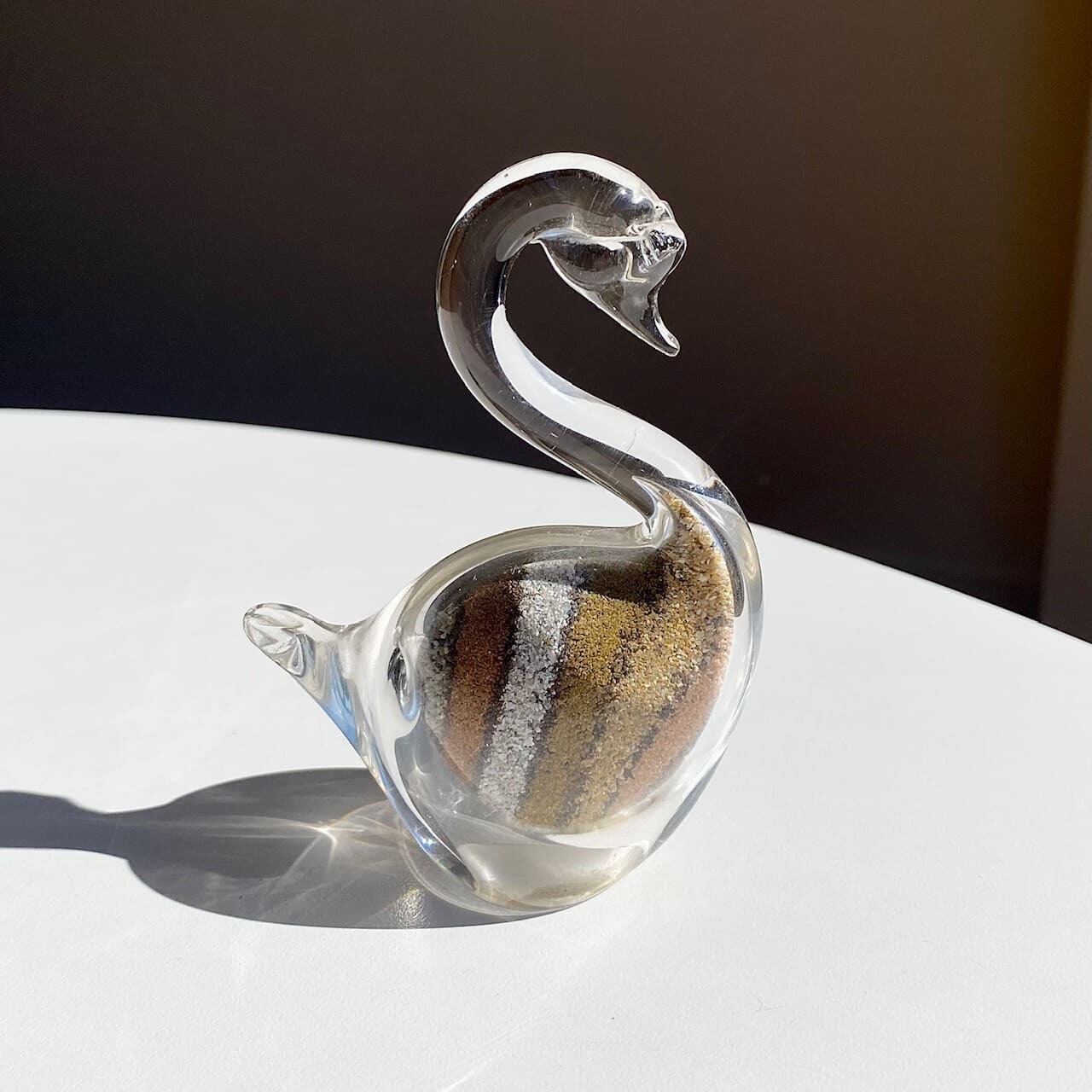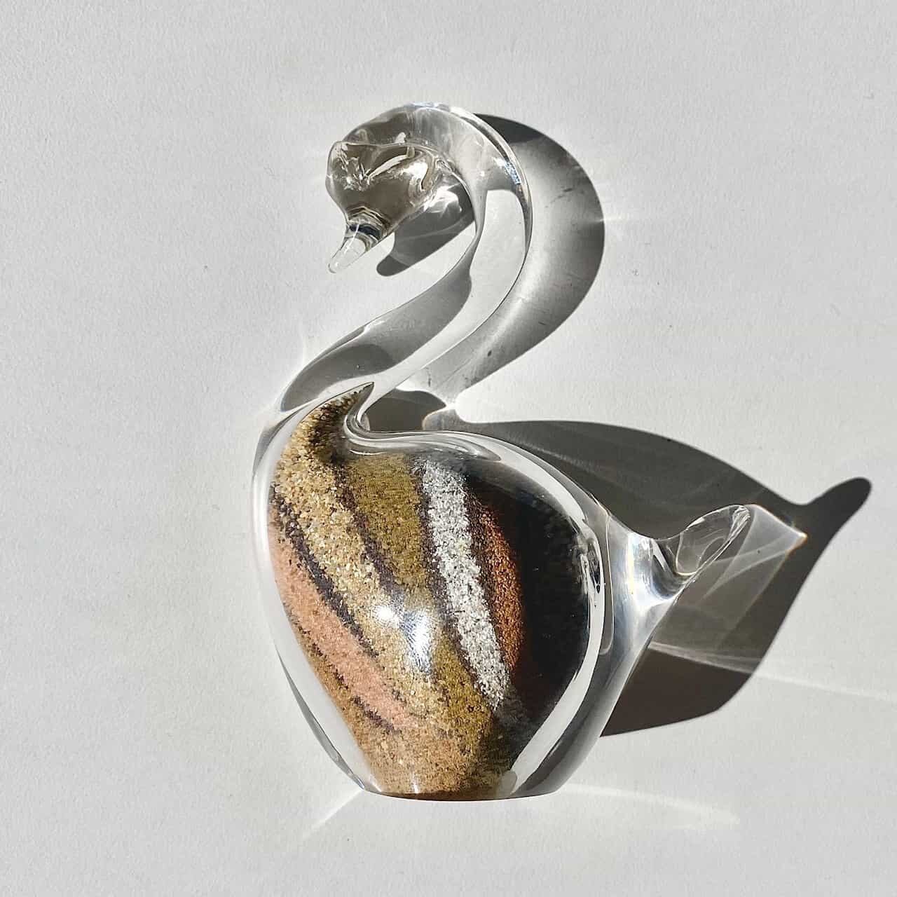 クリアなスワンのボディには、ストライプ模様の砂が!