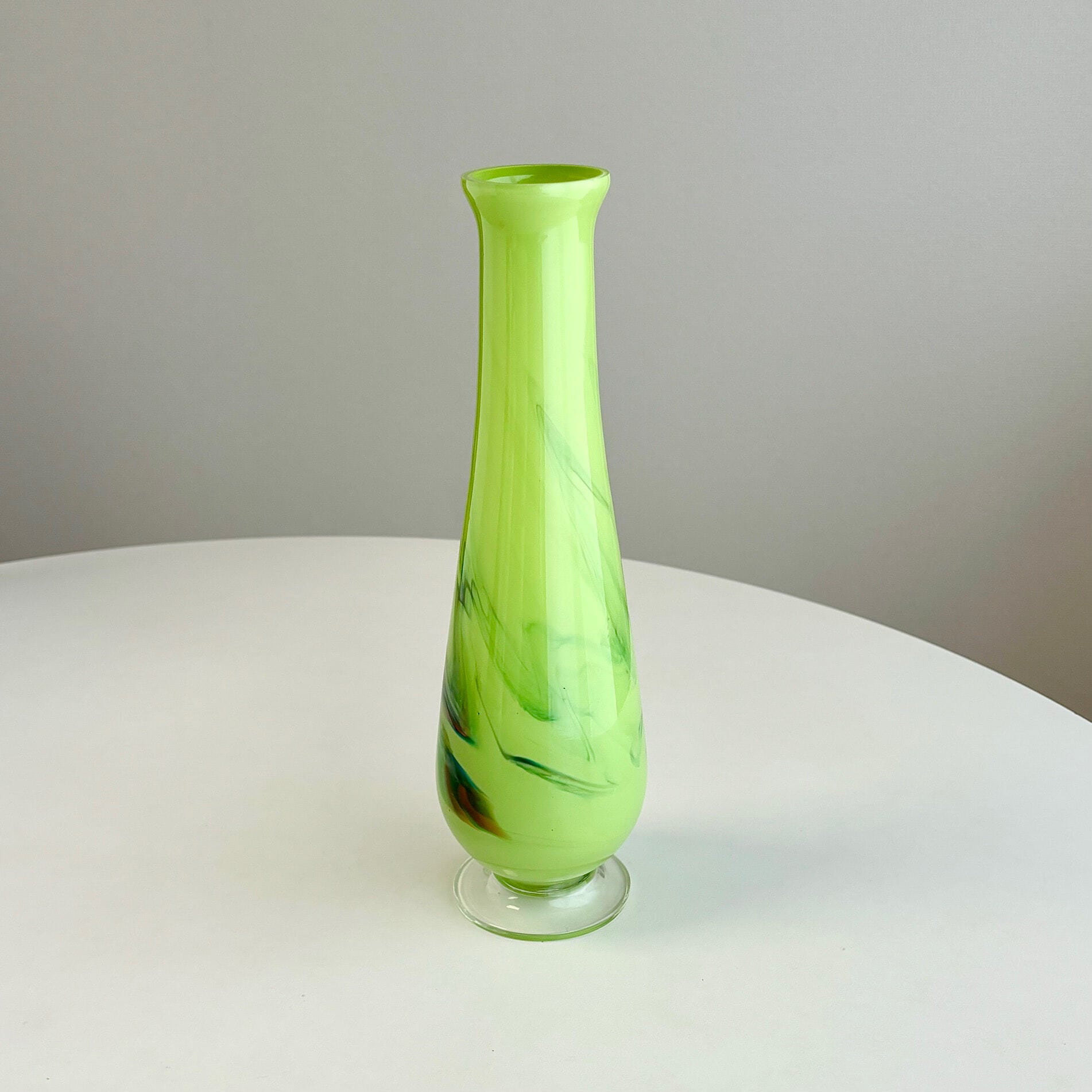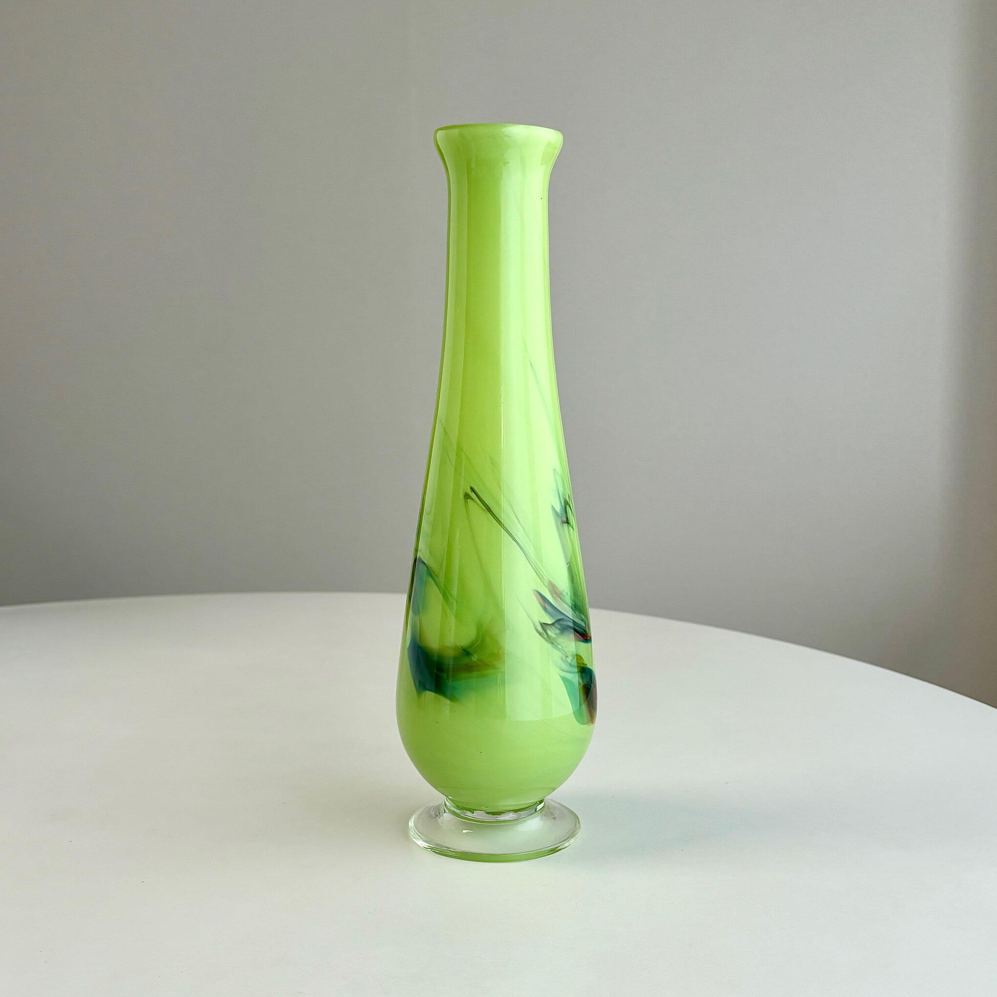 ミッドセンチュリー期にガラスアートを手がけていた、中国Dalian Glass社のフラワーベース。