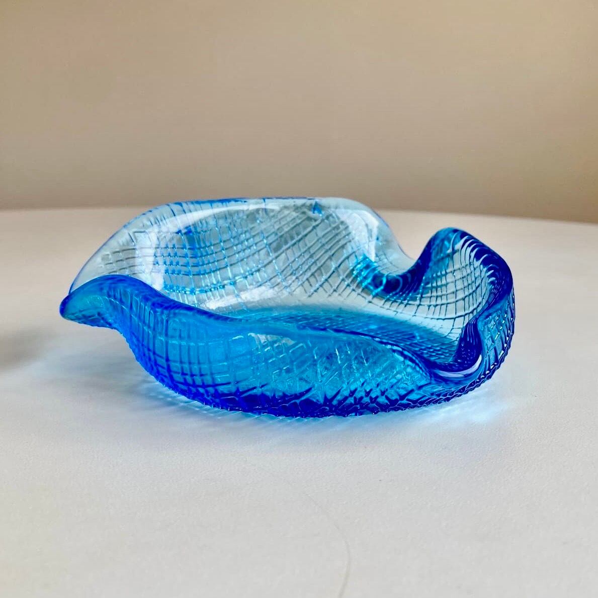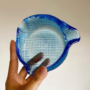 透き通るブルーに、カッティングによるチェック模様。ガラス工芸としての美しさも存分に楽しませてくれます。
