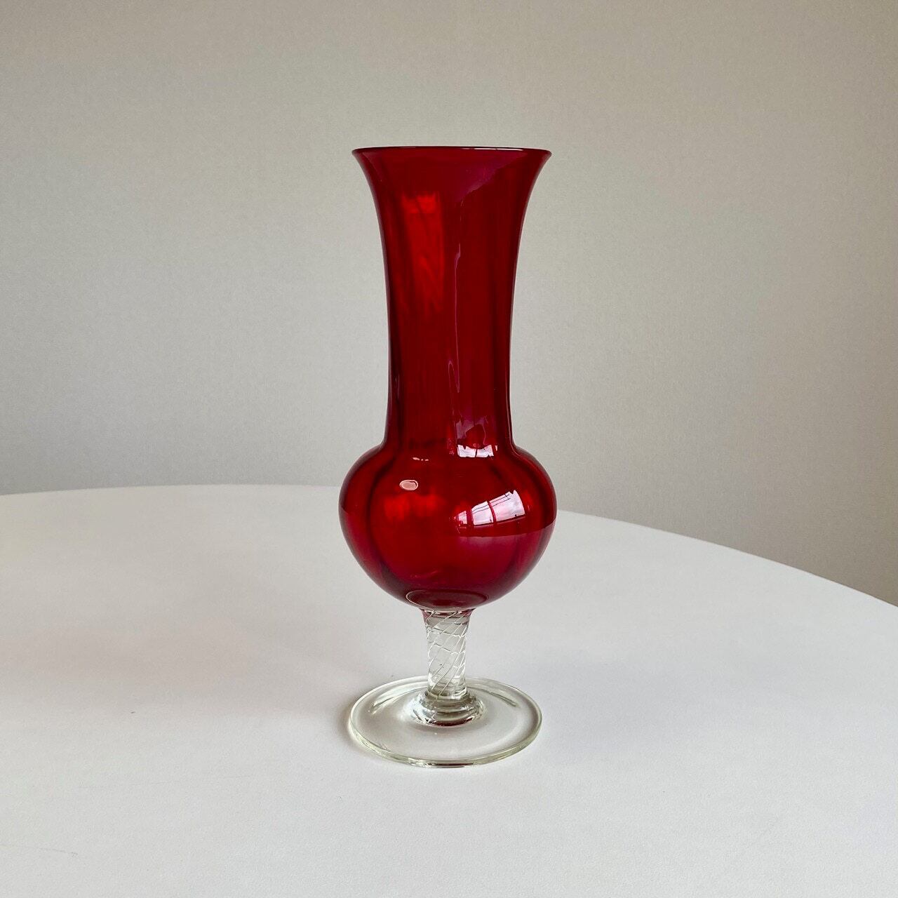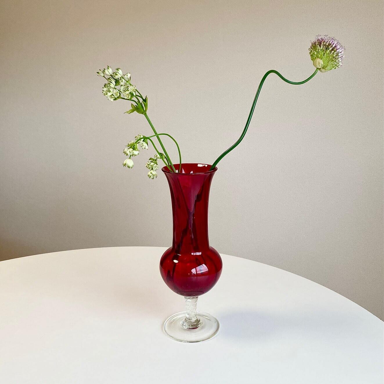 こちらのグラス型フラワーベースは、濃厚なルビーレッドのカラーが魅力的。