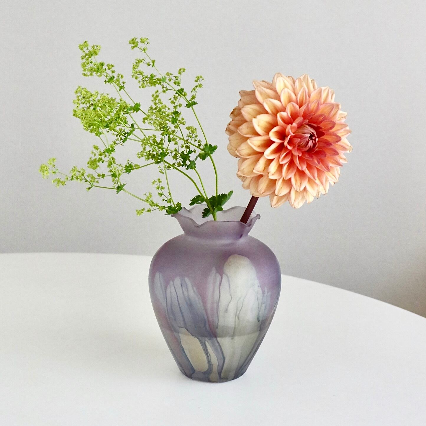こちらのフラワーベースは紫が強めの配色で、淡く柔らかい雰囲気の中に奥ゆかしい表情も感じられます。
