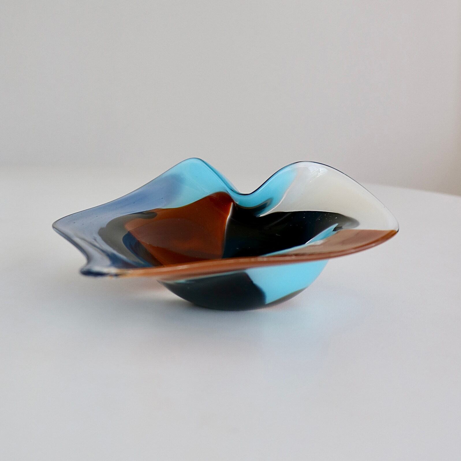 カラフルでダイナミックな模様が美しいガラスボウル。