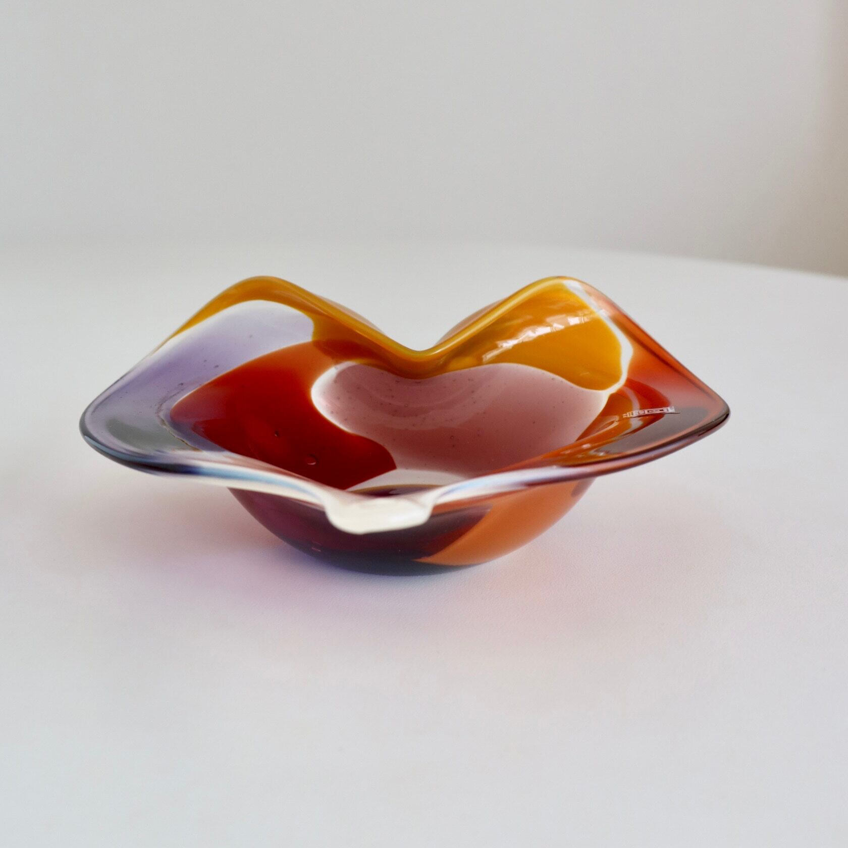 カラフルでダイナミックな模様が美しいガラスボウル。