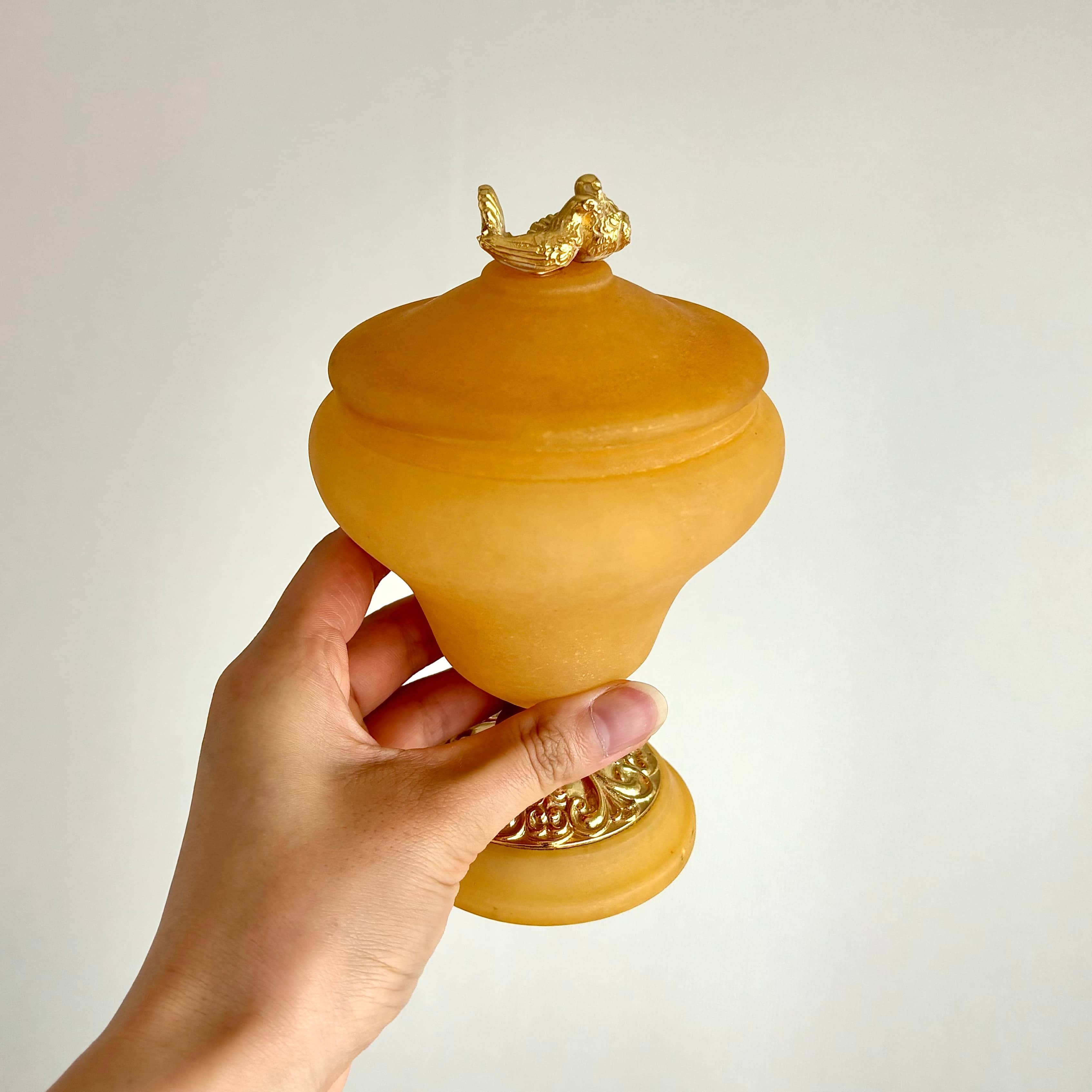優しいオレンジカラーにゴールドのアクセント、ちょこんと佇む小鳥たち、そのどれもが奥ゆかしい。